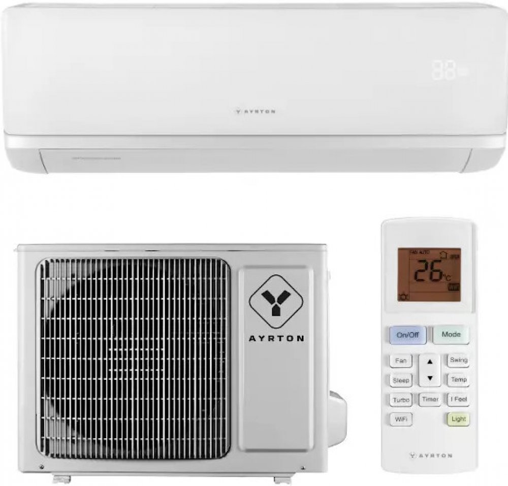 Ayrton AYL-12BIR3 3,2 kW včetně montáže Nástěnná klimatizace určená pro chlazení i vytápění. Cena standardní montáže obsahuje: 1ks venkovní a 1ks vnitřní klimatizační jednotky, dálkový IR ovladač standardní montáž klimatizace do max. výšky umístění 3 m s váhou venkovní jednotky max. 35 kg; montáž těžší jednotky, na šikmé střeše nebo ve výšce nad 3 m je účtována s příplatkem za lešení/výškové práce...