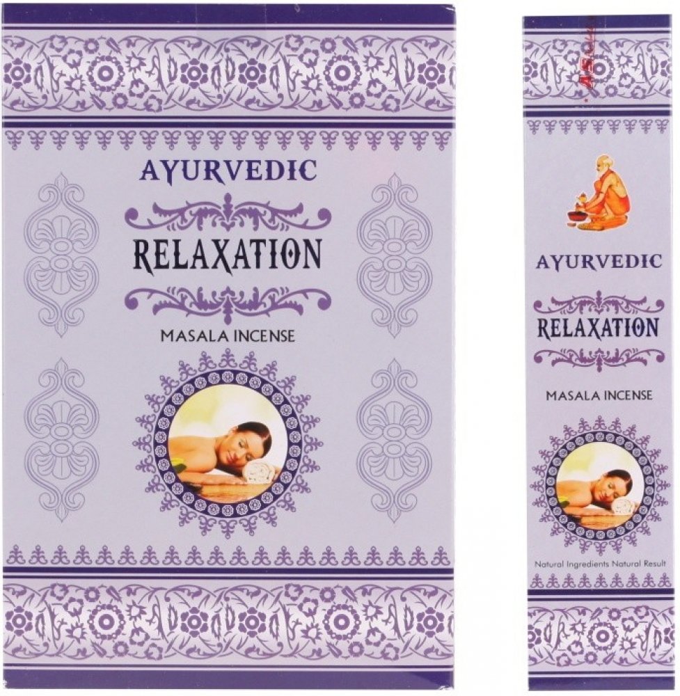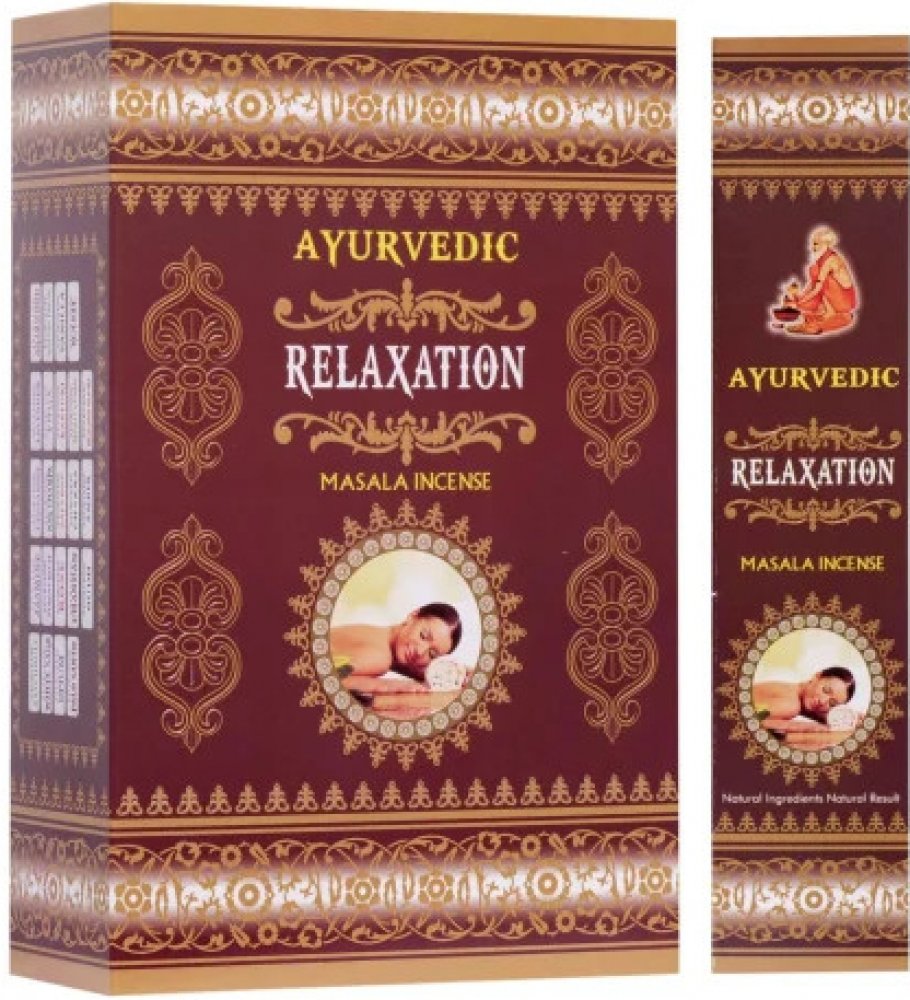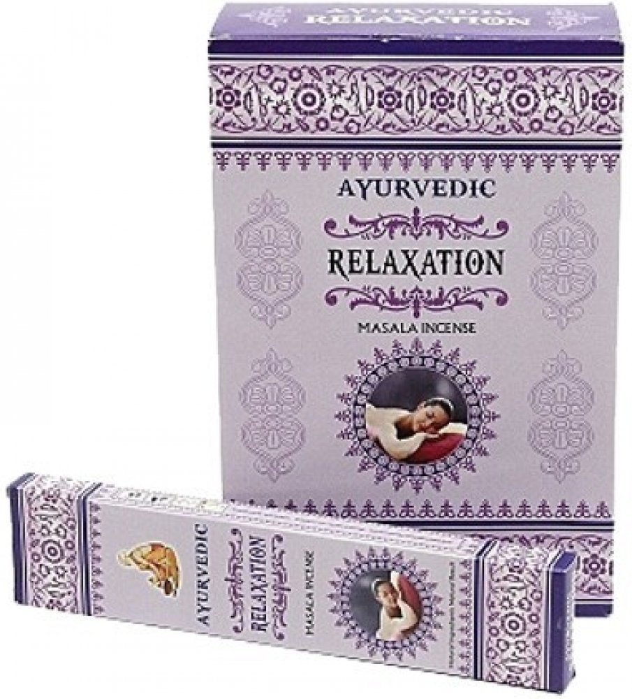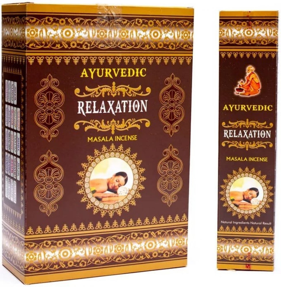 Vonné tyčinky Ayurvedic Relaxation jsou vyrobeny z aromatických květů, bylin a koření, vonných olejů, medu, aromatických dřev a dalších příměsí narolovaných na bambusové štěpině.