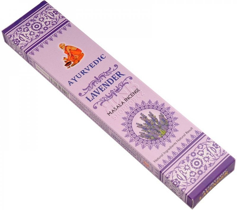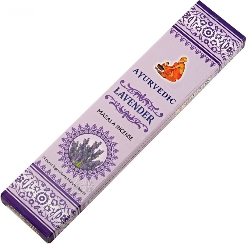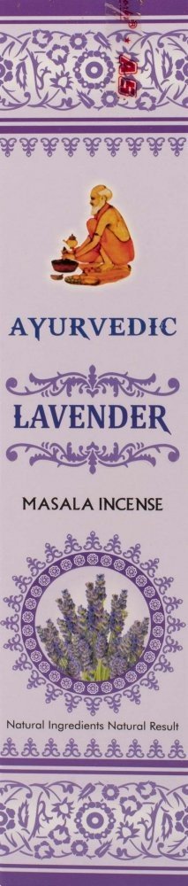 Vonné tyčinky Ayurvedic Lavender - Levandule vás potěší svou přirozenou vůní. Kvalita vonných tyčinek Ayurvedic Masala Incense je zaručena vysokým podílem přírodních příměsí a esencí. Tyčinky typu masala, což je výraz pro směs koření, se vyznačují světlou barvou a patří ke kvalitním tyčinkám, které stojí za to vyzkoušet.