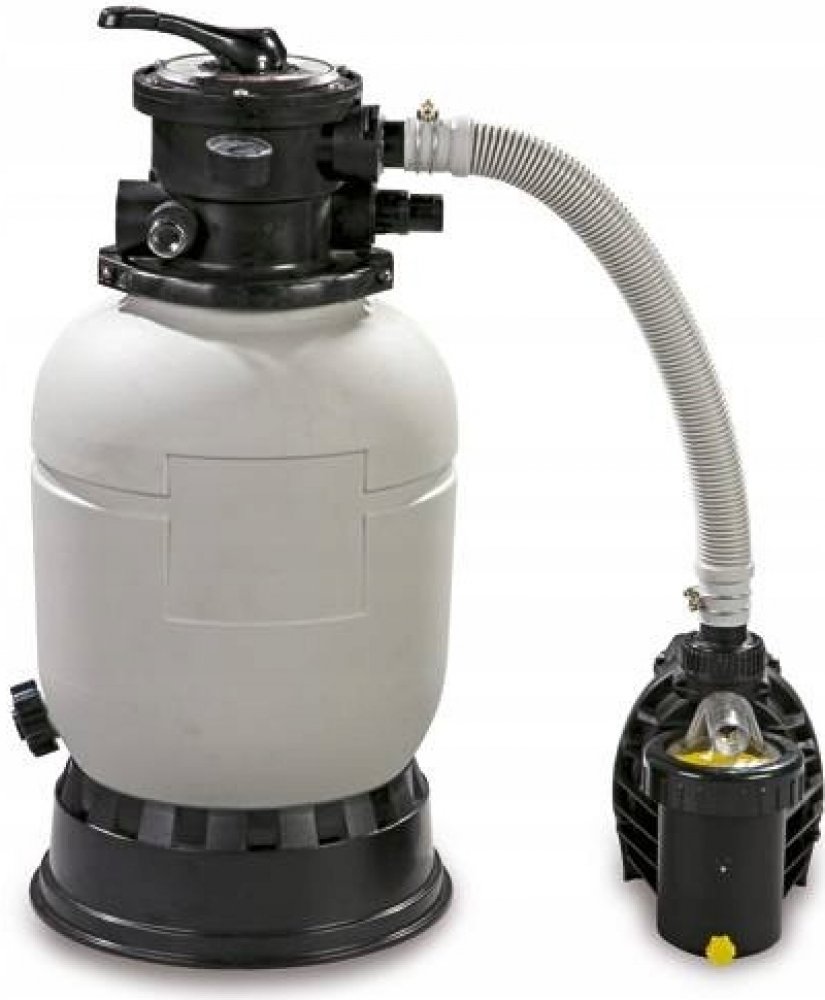 Kompletní písková filtrace o výkonu 5m3 / h pro bazén do 25m3.Písková filtrace se sestává z filtrační nádoby se 6 cestným ventilem s manometrem, propojovací hadice a čerpadlem s velkým předfiltrem.Filtrační nádoba je propojena s čerpadlem flexibilní hadicí.Maximální provozní teplota 35°C, maximální procovní tlak nádoby 2,5bar, filtrační výkon 5m3 / hod, písková náplň 20kg (Písková náplň není součá...