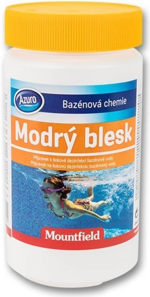 Azuro-modrý blesk je vysoce účinný chlorový přípravek k rychlé a efektivní šokové dezinfekci bazénové vody, likviduje přítomnost bakterií a řas v bazénové vodě, která se projevuje změnou barvy vody v bazénu (zezelenáním). Výhodou je rychlý úbytek přebytečného chloru z bazénové vody a tím možnost koupání ve velmi krátké době po ošetření.Dávkování: 13 g/m3 vodyPotřebnou dávku přípravku rozpustíme ve vědru vody a tento roztok stejnoměrně dávkujeme k přítoku vody do bazénu. Po přidání přípravku kontrolujeme a regulujeme hodnotu pH, kterou upravíme na 7,0 - 7,4. Přípravek se rychle odbourává. Může mít bělící účinky na dno a stěny bazénu.Poznámka: Výše uvedené informace mají pouze informativní charakter. Před aplikací si důkladně přečtěte návod k použití!!!Používejte biocidní přípravky bezpečně. Před použitím si vždy přečtěte údaje na obalu a připojené informace o přípravku.
