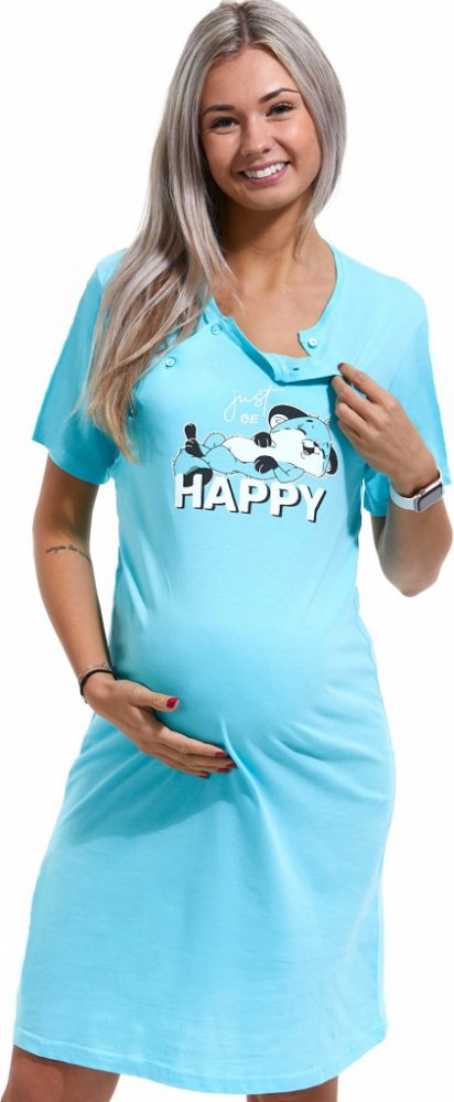 Azurová kojící a těhotenská košilka, just be happy - s lištičkou