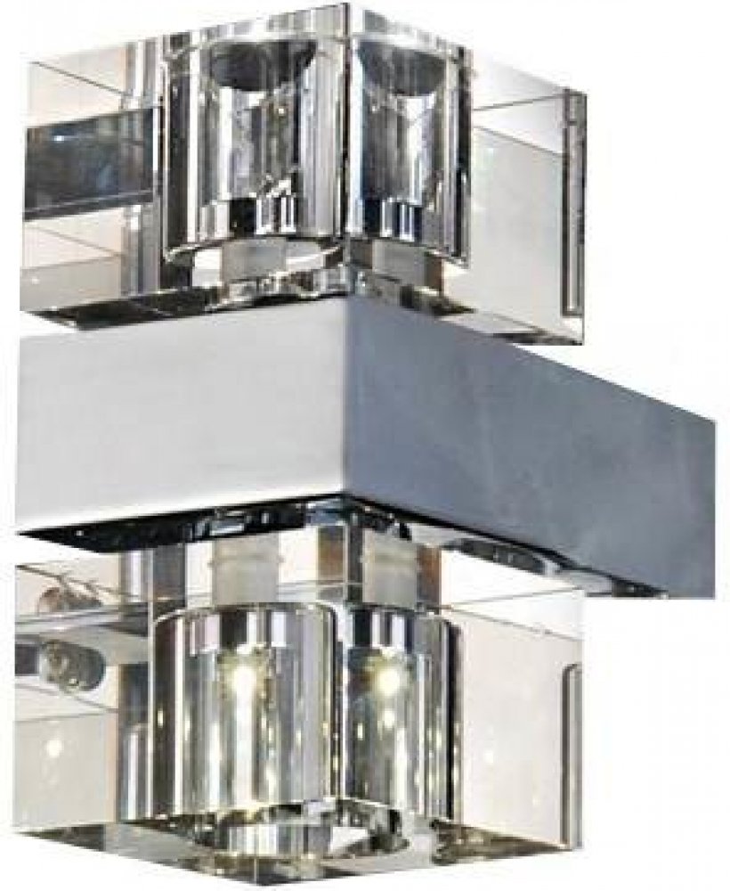 Nástěnné svítidlo Box 2 z kolekce designového osvětlení značky Azzardo působí velice moderním a elegantním dojmem díky kombinaci čirého skla s chromem. Skvěle vynikne v předsíni, ložnici nebo pracovně. Kvůli nízkému krytí IP20 není vhodné do místností s výskytem vyšší vlhkosti vzduchu. Jeho hranatá základna je vyrobena z kvalitního kovu s chromovou povrchovou úpravou. Dva čiré skleněné difuzory ve tvaru kvádrů jsou osazeny paticemi G4 o maximálním příkonu 2 x 20 W. Zdroj není součástí balení. Index podání barev je vyšší a roven hodnotě 80. Svítidlo je napájeno na 12 V. Vztahuje se na něj záruka 3 roky. Celkové rozměry činí 17 x 12,5 x 9 cm.