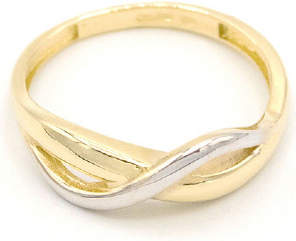 Dámský zlatý prsten proplétené vlnky ze žlutého a bílého zlata.Elegantní prsten dvě barvy zlata ve tvaru proplétaných vlnek z nichž jedna je z bílého zlata.Rozměr: výška 5mm.585/1000 Au 14karátů.Šperk označen platnou puncovní značkou.