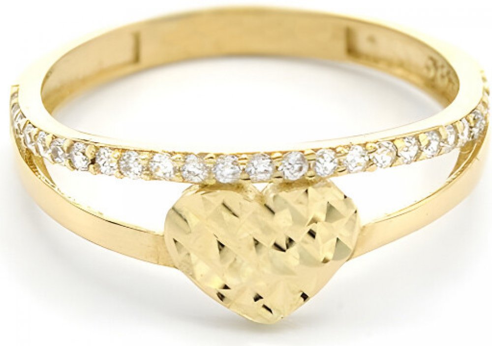 Elegantní dámský prsten srdce s gravírováním v lesklém vzhledu zdobený zirkony.
