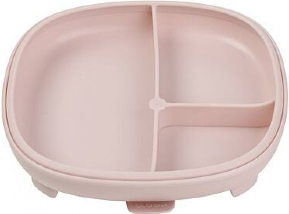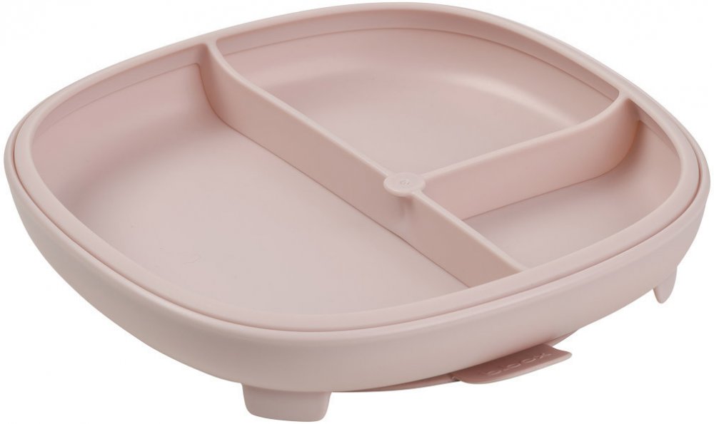 b.box Dětský silikonový talíř s přísavkou 2 v 1 růžový