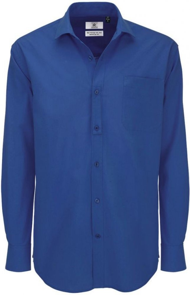 Velikost: M. Pánská košile s dlouhým rukávem od firmy B&C z čistě bavlněného hladkého popelínového materiálu s lehkou údržbou.Vlastnosti: měkký límec sedlo vzadu se dvěma záševky a módním prošitím rovná kapsa na levé straně hrudníku dvojitě složené švy na rukávech a bocích zakulacený spodní lem se čtvercovými bočními výztuhami knoflíky jsou barevně sladěné s perleťovým efektem poslední otvor na kn...