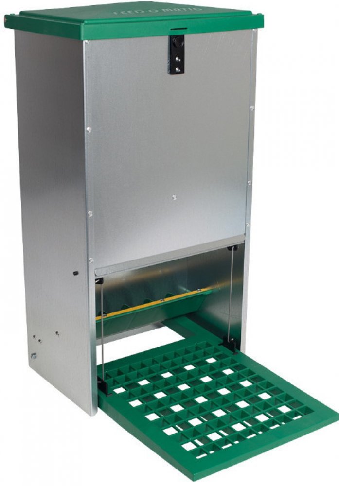 Feed-o-matic nášlapné krmítko je perfektním řešením pro bezpečné krmení vaší drůbeže. Díky inovativnímu designu je potrava přístupná pouze tehdy, když slepice stojí na stupátku, čímž je chráněna před škůdci, jako jsou myši, krysy a ptáci, kteří by mohli kontaminovat krmivo. Tento osvědčený koncept zajišťuje, že vaše slepice zůstanou zdravé a chráněné před nebezpečnými chorobami. Nášlapné krmítko je vyrobeno z odolného pozinkovaného plechu a plastu, což mu zaručuje dlouhou životnost a vysokou stabilitu.