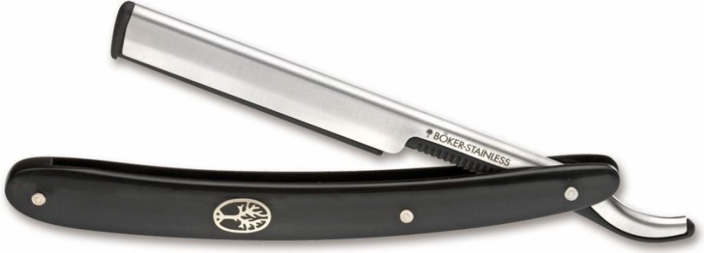 Kvalitní holicí strojek typu shavetta od značky Böker. Je podobný břitvě, ale s tím rozdílem, že je na klasické žiletky a tak se nemusíte starat o obtahování nebo broušení. Shavetta je vhodná jak do holičství, tak i pro ty, kteří si netroufají na břitvu. Má rukojeť z vysoce odolného plastu zdobenou logem stromu z niklu a nerezový držák na žiletky. Díky dvěma vložkám z odolného plastu je možné použít žiletky běžné délky 43 mm i dlouhé žiletky 65 mm. Dodáváno v historickém balení s plastovou vložkou na dlouhé žiletky a jednou krátkou žiletkou.