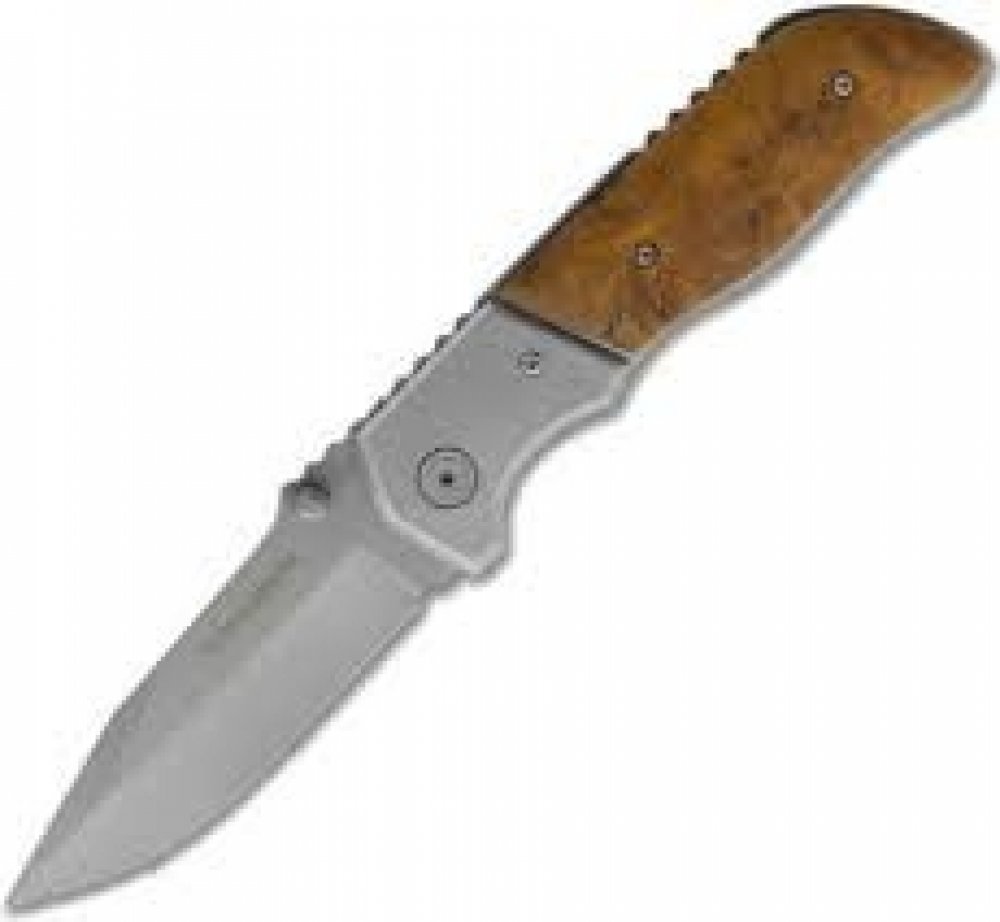 Rukojeť nože je tvořena kombinací nerezové oceli, kterou doplňují klasické dřevěné střenky. Nůž je vybaven klipem pro snadné upevnění k oděvu.