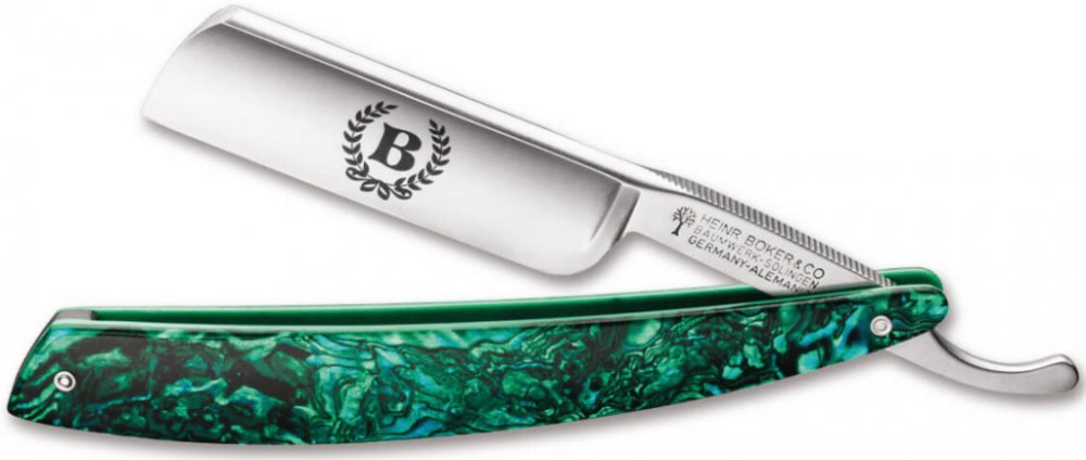 Čepel z uhlíkové oceli o velikosti 6/8" se vyznačuje extrémně dutým výbrusem se zoubkováním na obou stranách a francouzskou špičkou, která dokonale doplňuje jedinečnou abalonovou rukojeť. Jemné laserové gravírování odráží historické rytiny používané na holicích břitvách Boker z počátku 20. století. Břitva je dodávána v rámovém pouzdře s certifikátem pravosti, což z ní činí jak sběratelský kousek, tak prémiový nástroj pro péči o vzhled.