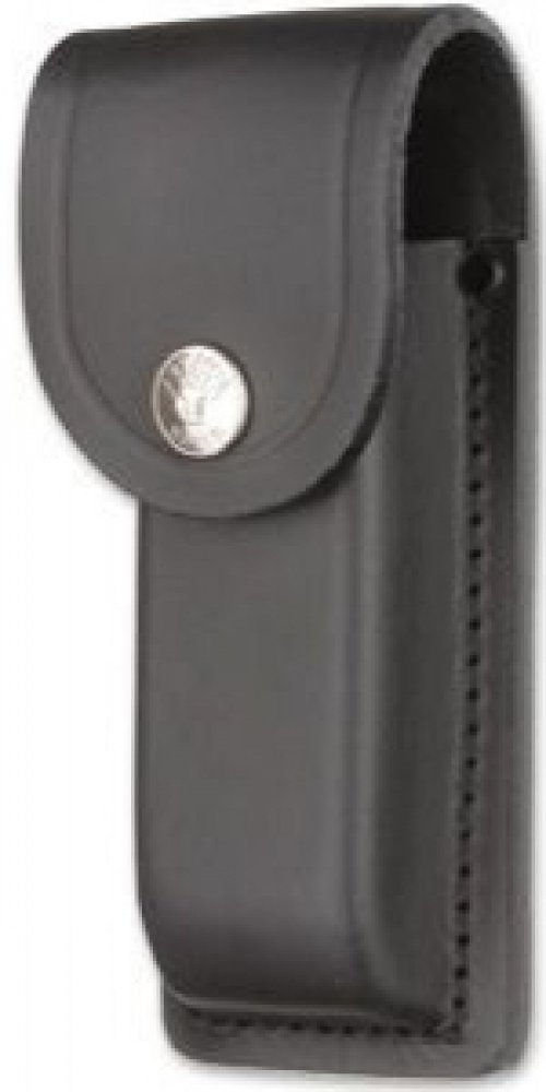 Kvalitní černé kožené pouzdro Böker pro nože do délky 12 cm v zavřeném stavu.