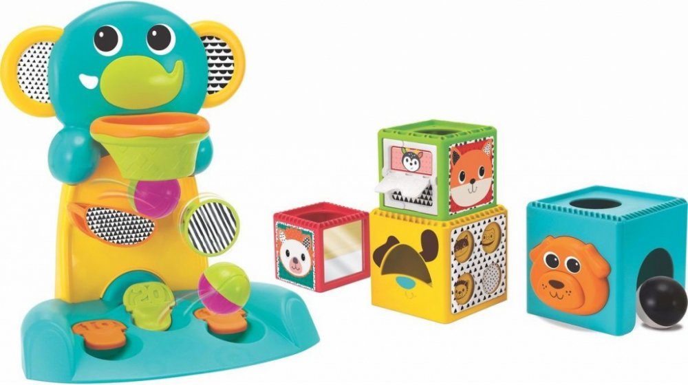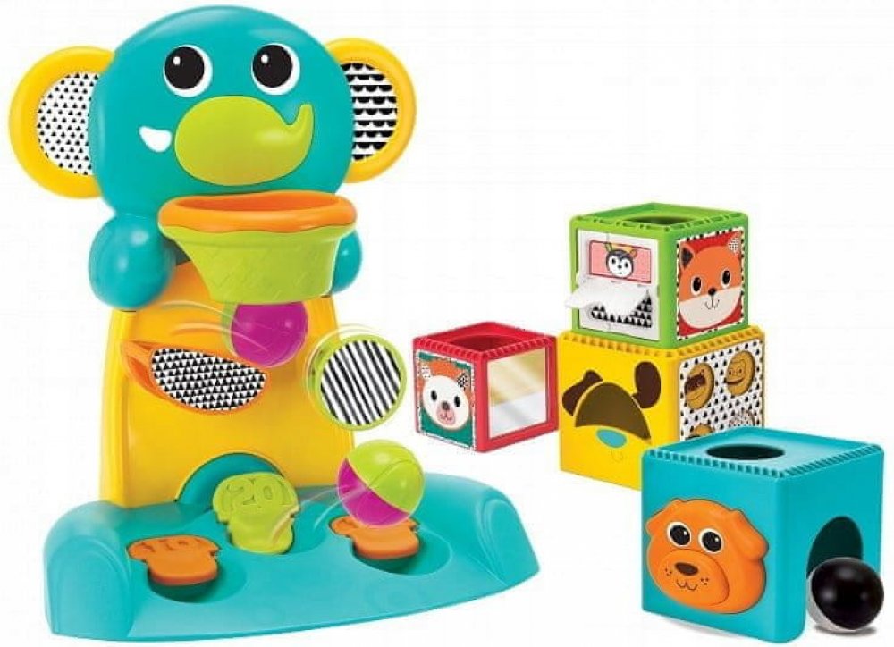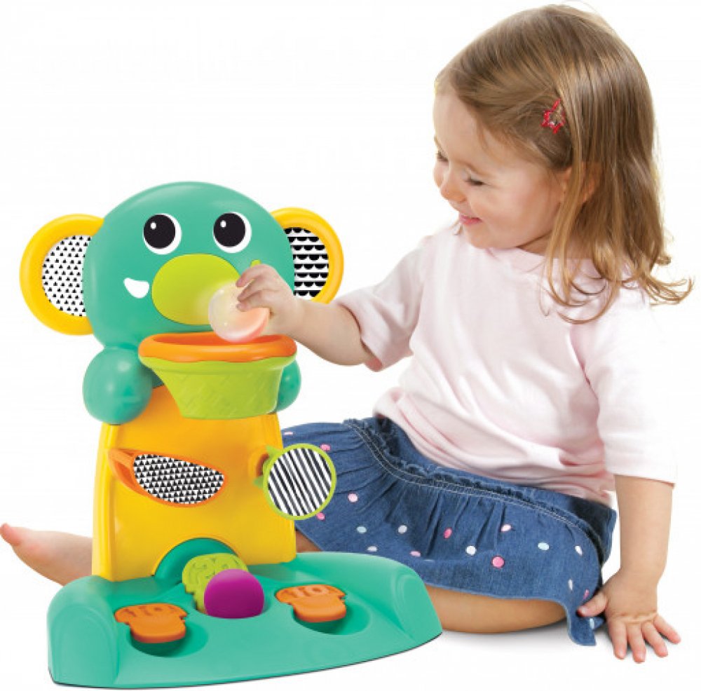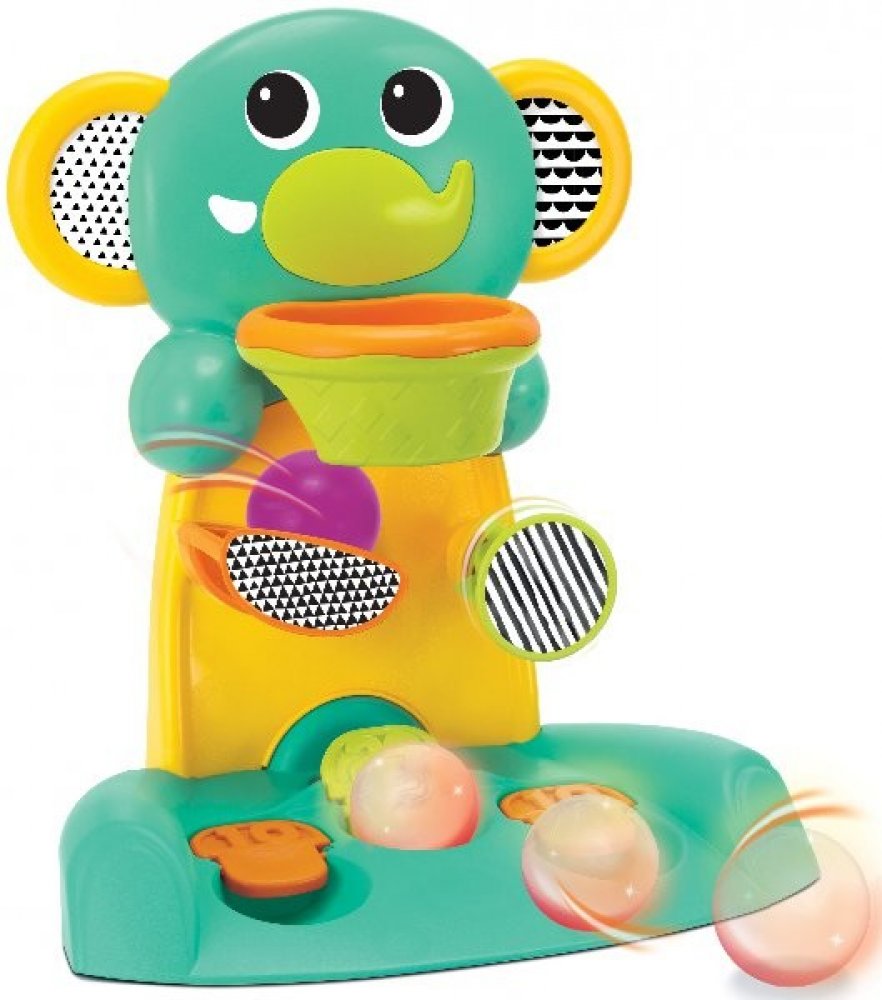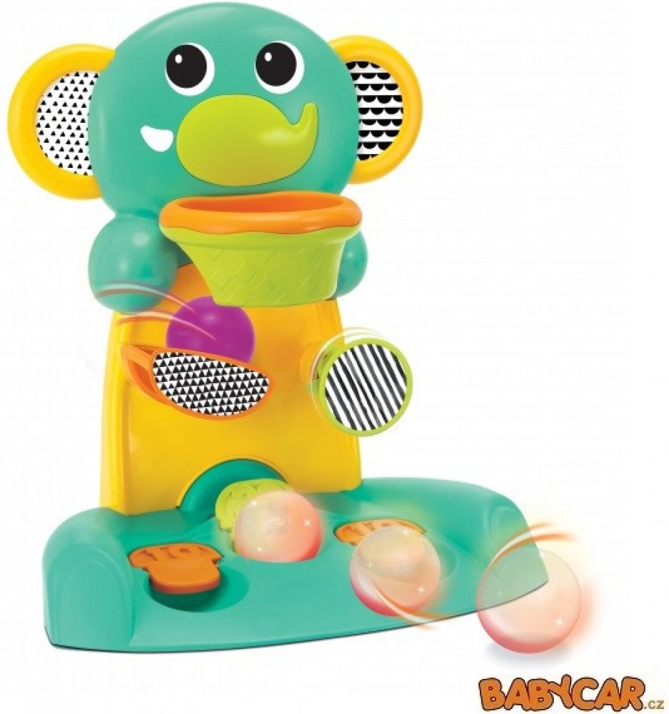 Hrací pult Happy Hoops v podobě barevného slona umožní vašemu dítěti