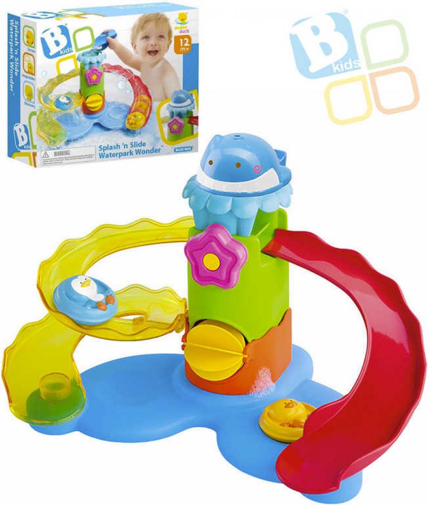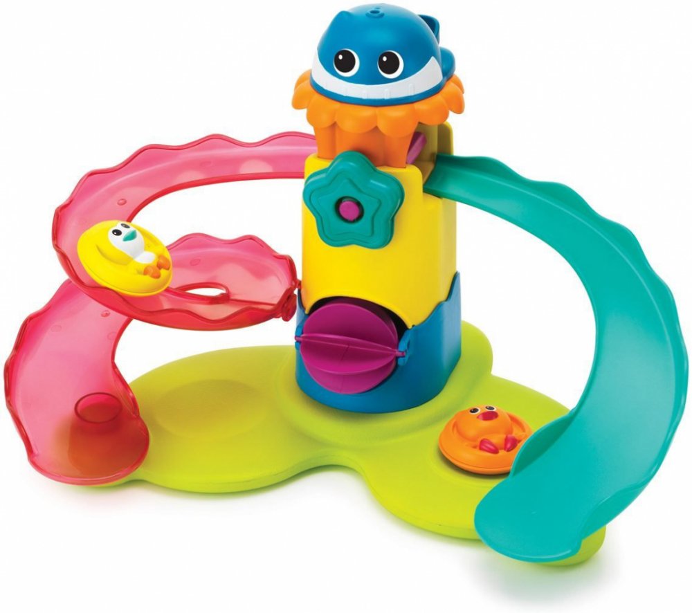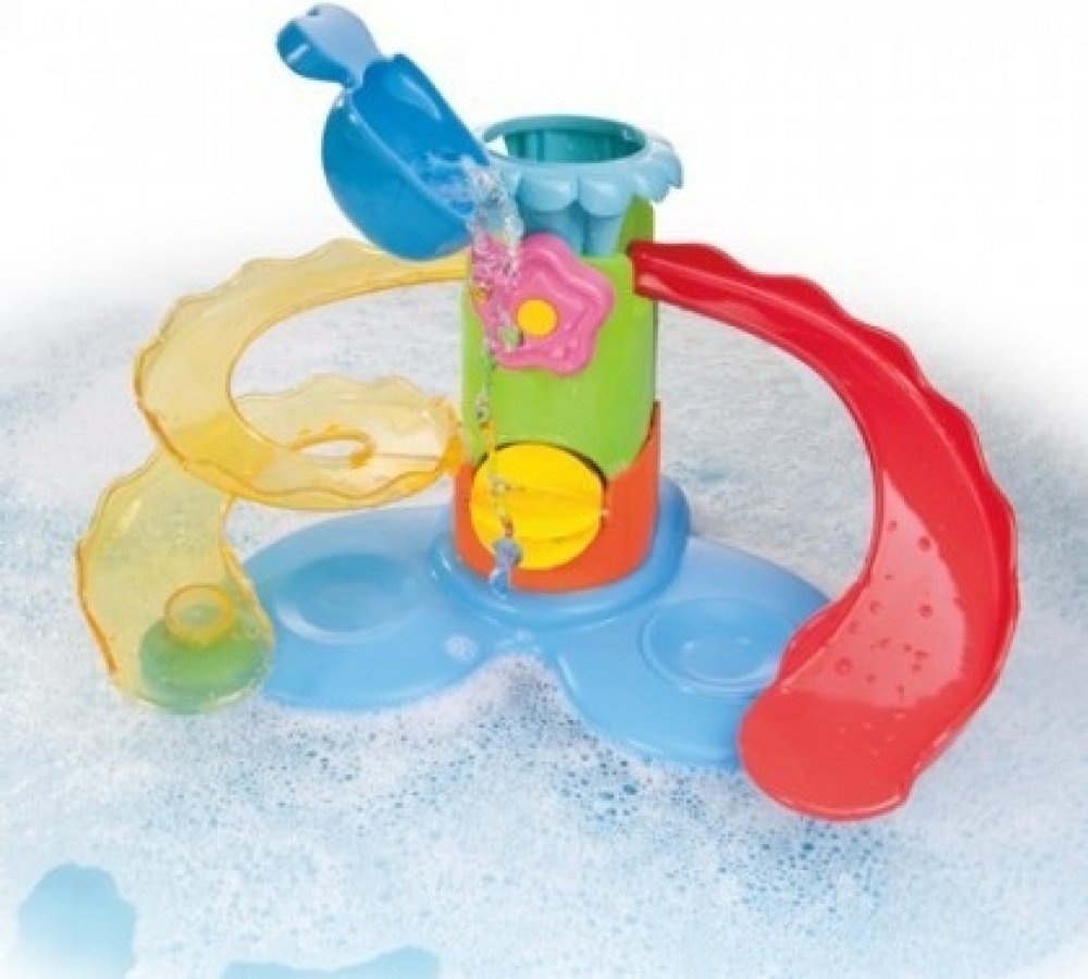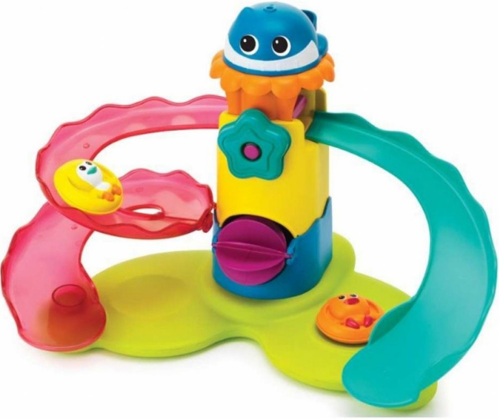 Sadu hraček do koupele tvoří plovoucí tobogan s vodním mlýnkem, kelímek ve tvaru rybičky a kačenka s tučňákem, kteří sviští na toboganu do vody. Hračka zajistí zábavu při koupání a zároveň rozvíjí představivost, smysly i motoriku dítěte. Vhodné od 12 měsíců.