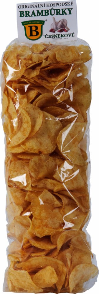 Bramborové lupínky smaženéSkladujte v suchu a temnu, chraňte před SLUNCEM.Složení:brambory, rostlinný olej řepkový, kukuřičná mouka, jedlá sůl, dextróza, mléko, cukr, látka zvýrazňující chuť a vůni E 621, česnek sušený, aroma (chedarové), regulátor kyselosti E 330, barviva (E 160c, E 120)Průměrné výž. hodnoty100gporce 30 g(30 g)Energetická hodnota2330 kJ557 kcal699 kJ167,1 kcal8Tukyz toho nasyc. m...
