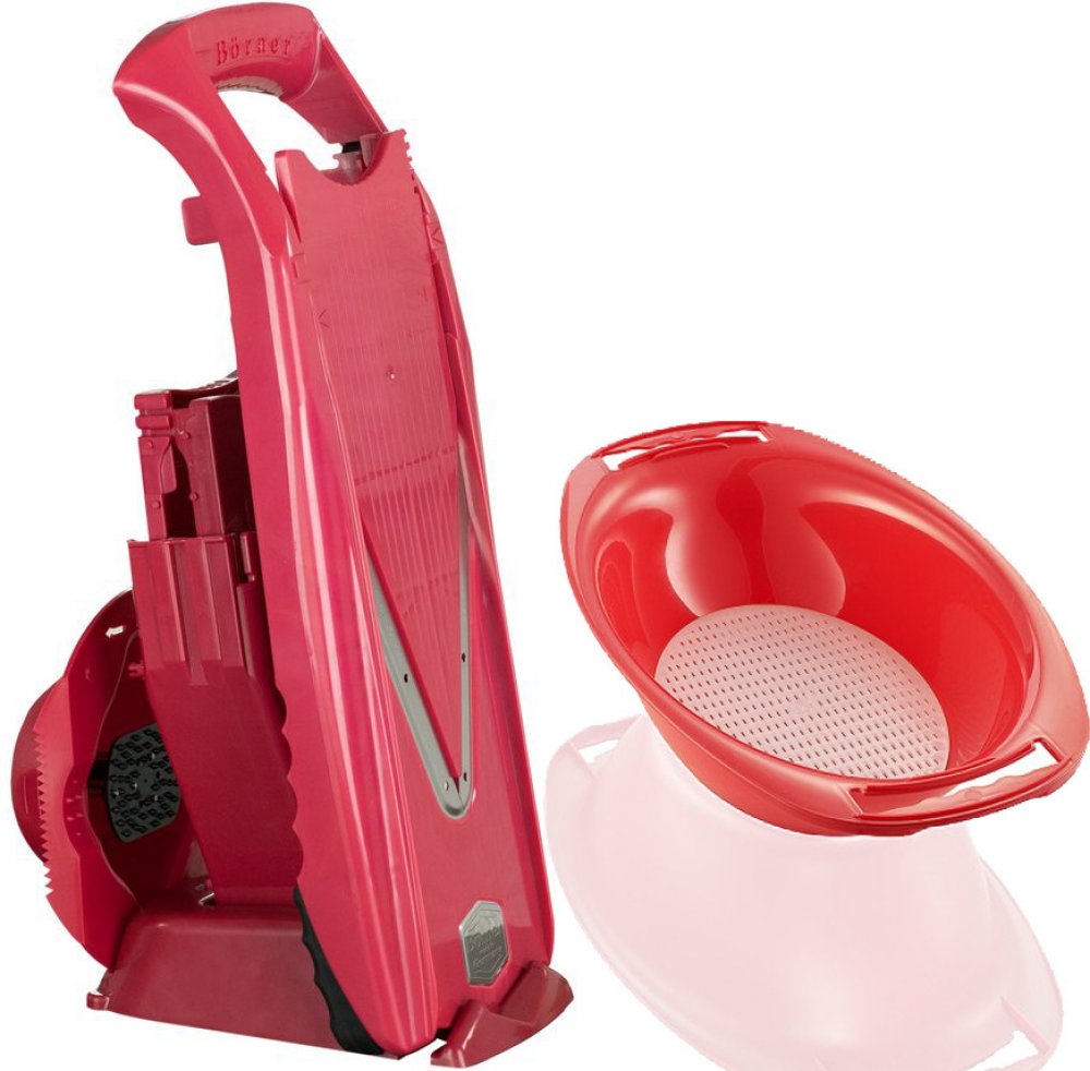 S kráječem Börner V5 PowerLine pracujete ještě rychleji, přesněji a bezpečněji než kdykoliv předtím. Výškově nastavitelné planžety nabízí různé variace krájení. Plátky nakrájíte ve čtyřech různých tloušťkách, nudličky o čtyřech různých silách a kostky ve dvou různých velikostech. Takže máte k dispozici deset různých variant krájení. Součástí balení je i ochranný kloubouček Börner, který Vám umožní bezpečně zpracovat ovoce a zeleninu beze zbytku a současně ochrání Vaše prsty před zraněním patentovanými, ostrými noži. Pro bezpečné a úsporné skladování planžet použijte bezpečnostní zásuvný box. Box umístěný na zadní straně kráječe Börner V5 Power Vám poslouží jako podstavec. V Balení najdete i dokovací stanici. Stanice vytváří ideální místo pro uložení vašeho Börner Vť kráječe. Poskytuje prostor pro kráječ, zásobník s planžetami a ochranný klobouček. Perfektní domov pro váš Börner kráječ a jeho veškeré příslušenství. Miska ke kráječi Original Börner V5 Power - nikde žádný nepořádek! Kráječ nacvaknete na misku a vše do ní padá! Tato originální Borner mísa byla vyvinuta speciálně pro V-Slicer PowerLine a zaručuje perfektní a bezpečné uchycení pro kráječ. Ovoce a zelenina jsou uchyceny v podnosu a saláty jsou připraveny rychlým a snadným způsobem. Přídavné síto slouží jako sítko pro čerstvě umyté listy salátu, ovoce apod. Odolný vůči oleji a ocetům!Snadné ovládání a čištění! Tato sada obsahuje: Börner V5 PowerLine V-kráječ Bezpečnostní planžeta 3,5 mm planžeta 7mm planžeta Zásobník na planžety Dokovací stanice Ochranný klobouček Miska ke kráječi Original Börner V5 PowerLine Všechny použité materiály jsou bezpečné pro potraviny, bez BPA a neobsahují změkčovadla. Vložky pro další možnosti krájení lze objednat samostatně.
