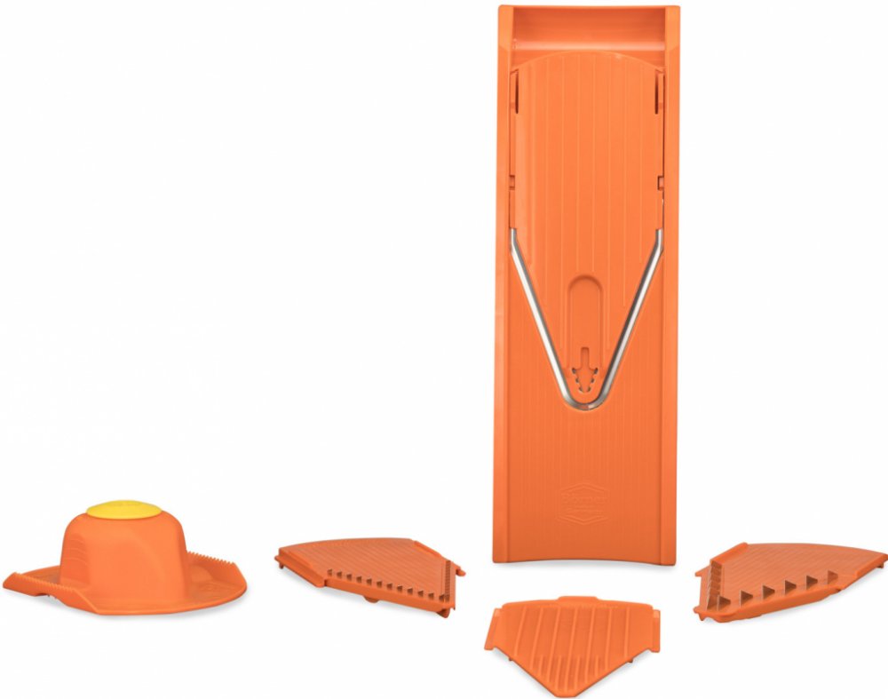 Rychle a přesně, bezpečně a snadno – tak by mělo vše fungovat i v životě. S naším kráječem V1 ClassicLine dosáhnete tohoto cíle při krájení zeleniny a ovoce v každém případě. Otvor pro planžety i zadní strana ochranné planžety umožňují krájet celkem tři různé tloušťky plátků. S planžetou 3,5 mm a 7 mm snadno nakrájíte rovnoměrné proužky, pásky a kostičky (pokud předtím naříznete ovoce nožem). S kr...
