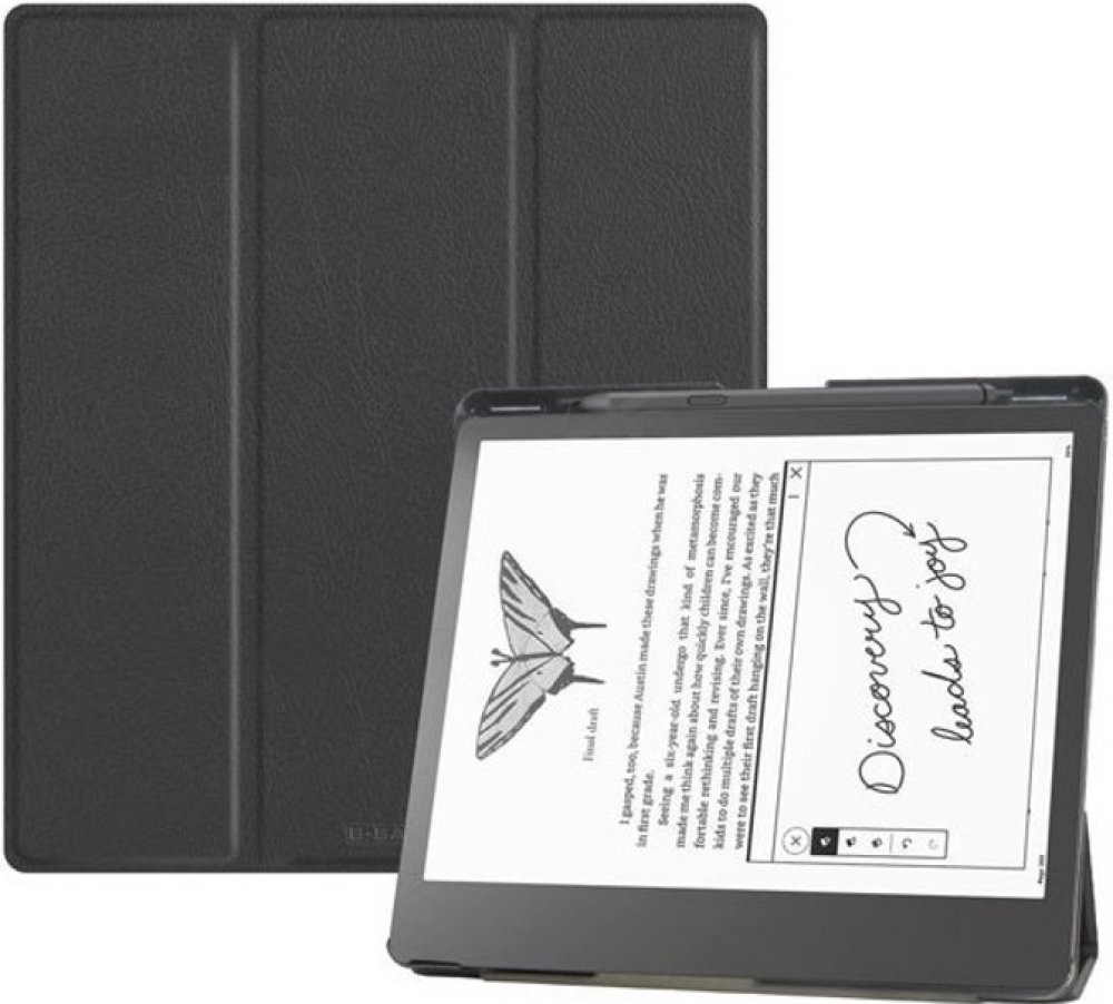pouzdro na čtečku knih Univerzální Kindle Scribe, pevné, materiál: umělá kůže, plast a semiš, wake/sleep (automatické zapnutí a vypnutí displeje), ochrana displeje proti poškrábání a stojánek, černá barva (84282897183)