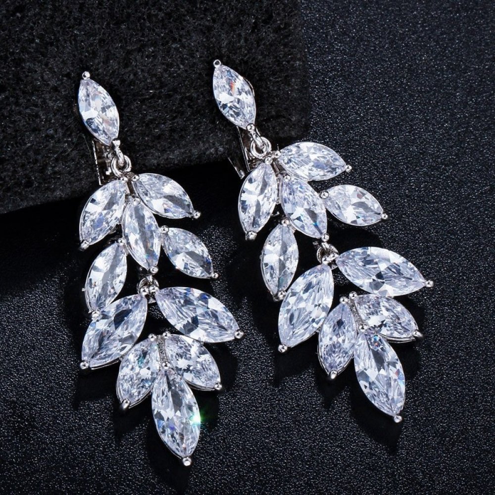 • Elegantní listový design – výrazný, ale stále jemný a ženský. • AAA kubické zirkony – zaručují oslnivý lesk. • Bílé pozlacení – chrání povrch a dodává šperkům noblesu. • Pohodlné klipsy – vhodné i pro nepropíchnuté uši. • Skvělý dárek pro každou ženu, která miluje eleganci.