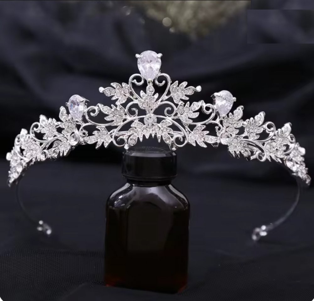 Postříbřená korunka do vlasů zdobená lístky je nádherný doplněk s jemným a romantickým vzhledem. Lesklé postříbření dodává korunce chladivý, elegantní třpyt, zatímco dekorativní lístky vytvářejí jemný přírodní motiv. Korunka je bohatě posetá drobnými krystaly, které odrážejí světlo a dodávají celkovému designu zářivý efekt. Tento rafinovaný kousek je ideální pro nevěsty, slavnostní příležitosti ne...