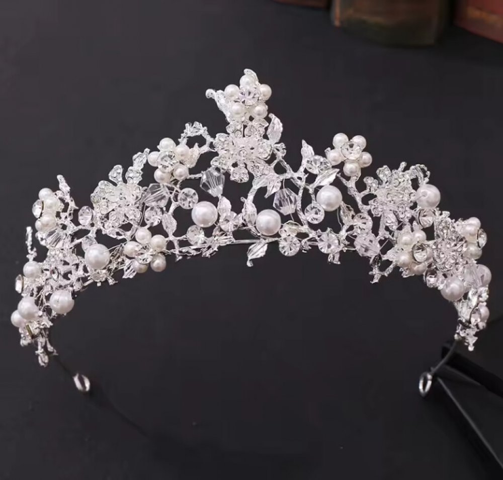 Tato luxusní tiára do vlasů okouzlí precizním zpracováním a harmonickou kombinací lesklých krystalů a perlových květů, které jí dodávají romantický a slavnostní vzhled. Postříbřený základ krásně zvýrazňuje třpyt dekorací a působí elegantně a nadčasově. Tiára je ideálním doplňkem pro svatby, plesy, slavnostní události nebo focení, kde chcete zazářit jako opravdová královna.