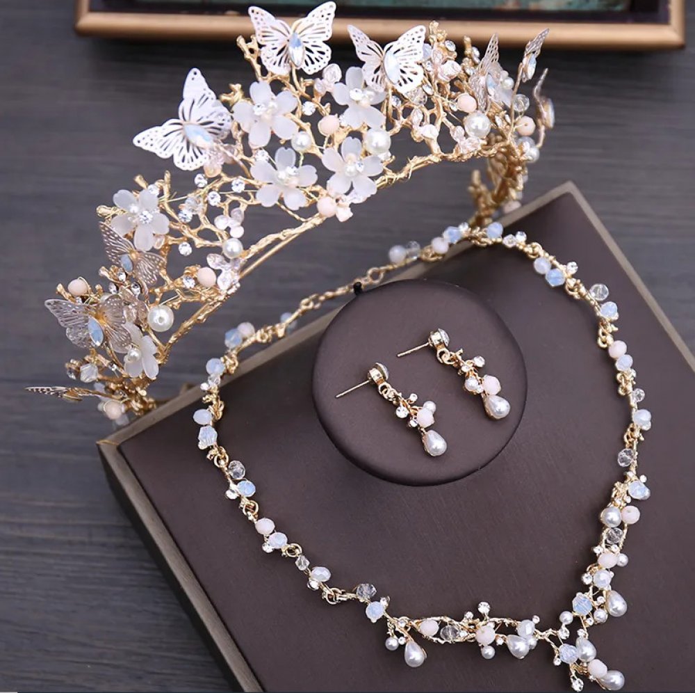 Slavnostní pozlacená souprava s motýlky je nádherným a půvabným doplňkem pro zvláštní okamžiky. Tato exkluzivní souprava zahrnuje korunku zdobenou motýly a dalšími pozlacenými detaily, které jí dodávají královský lesk.Je ideálním doplňkem pro svatební nebo slavnostní události, kdy chcete zářit jako královna. Koruna s motýly přináší nádech romantiky a elegance do vašeho vzhledu, a spolu s dalšími d...