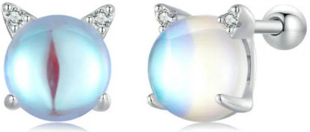 Stříbrné náušnice ve tvaru kočičí hlavy s měsíčním kamenem jsou půvabným a tajemným doplňkem, který zaujme každého milovníka koček a mystiky.