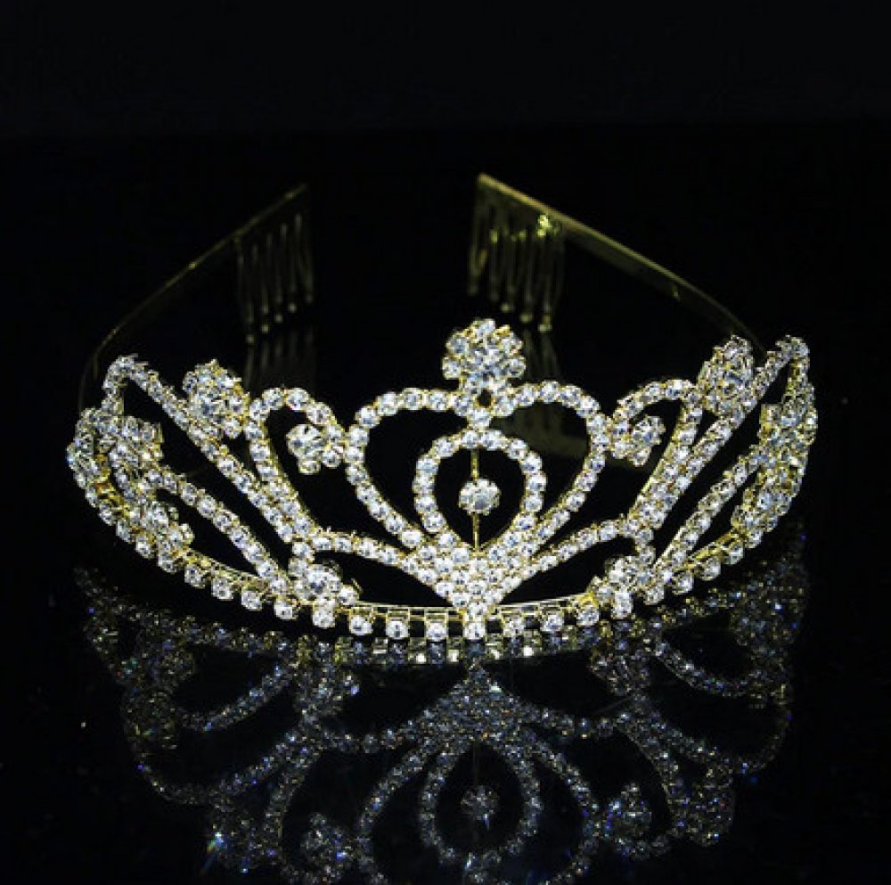 Pozlacená korunka je krásnou ozdobou slavnostního účesu. Je velice slušivá a vhodná na svatbu, či na ples.
