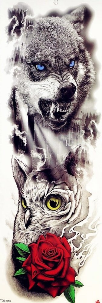 B-TOP Voděodolné dočasné tetování motiv VLK A SOVA černá/červená