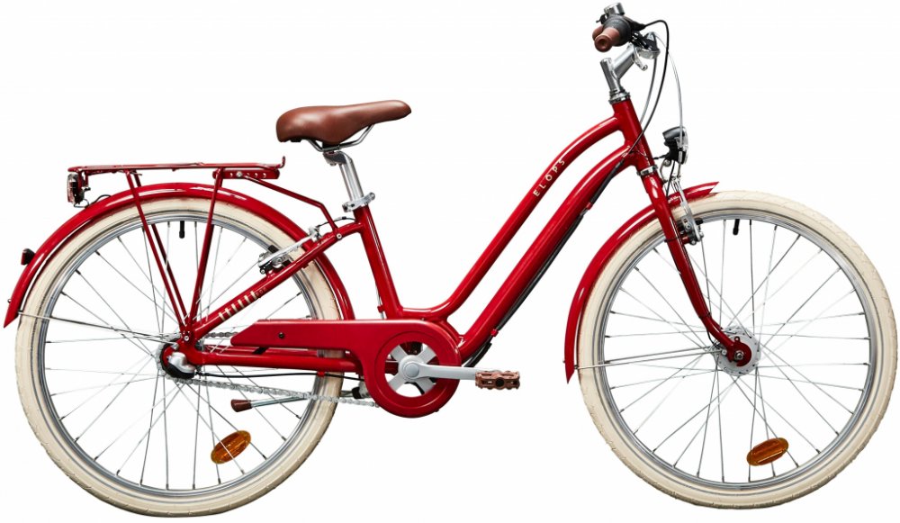 B'Twin městská Přední dynamo; zadní Shimano Nexus 3-rychlý náboj hliníkové pevná dětská 2025 1 x 3 24" (cca 130–145 cm) silnice a cyklostezky rekreační snížený nástup nosič, blatníky, stojan ráfkové – lehké, jednoduché, levná údržba Hliník – odolný, nenáročný na údržbu Brzdové páky upravené blíže k řídítkům pro děti Svařený představec s řídítky plastové Svařená řídítka s představcem, městská geometrie Dětské sedlo s plastovou výztuhou