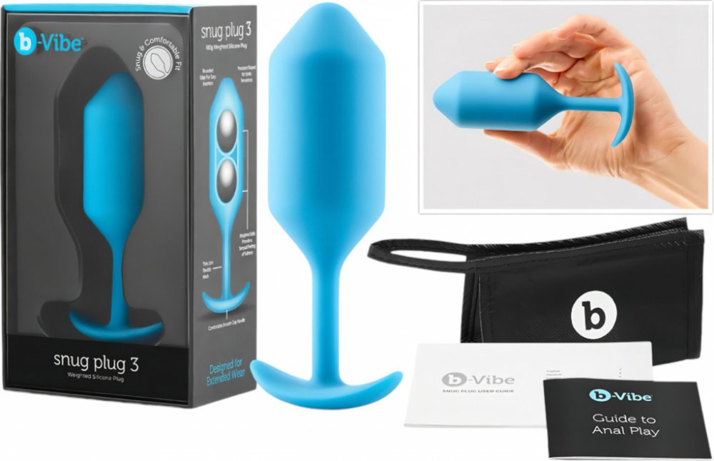 Objev hlubší rozkoš s tímto prémiovým análním kolíkem!Proč si ho zamiluješ?Špičkový, pokožce přívětivý materiál - super i pro citlivou kůžiIdeální velikost a váha pro pokročilé - ještě intenzivnější zážitkyDvojitá vnitřní kuličková konstrukce - jedna kulička je pevná, druhá se pohybuje pro extra stimulaciHlavice ve tvaru rakety - anatomicky tvarovaná pro maximální potěšeníÚzký krk - pohodlné nošeníNenápadná základna ve tvaru háčku - tajné potěšení i pod oblečenímVoděodolný - používej ve sprše nebo ve vaněSnadné čištěníNa co si dát pozor:Před i po použití důkladně očistiPoužívej jen lubrikační gel na vodní báziPři skladování dej pozor, aby se nedotýkal ostatních produktůSpecifikace:Pokožce přívětivý, flexibilní silikonAnatomický tvar ve stylu raketyIdeální velikost a váha pro pokročilé uživateleCelková délka: 13,2 cmVložitelná délka: 11,8 cmPrůměr: 0,9-3,6 cmDvojitý vnitřní kuličkový mechanismusModré provedeníMateriál: silikon (dle EU normy, bez ftalátů)Jak čistit:Pečlivě umyj jemným mýdlem a vlažnou vodou, dobře opláchni a nech uschnout. Doporučujeme použít i speciální čisticí prostředek (lze dokoupit zvlášť).TIPP: Pro ještě hladší použití vyzkoušej lubrikační gel na vodní bázi!Podívej se na video představující b-vibe Snug Plug 3 - dvojitý anální kolík (180g) - modrý!
