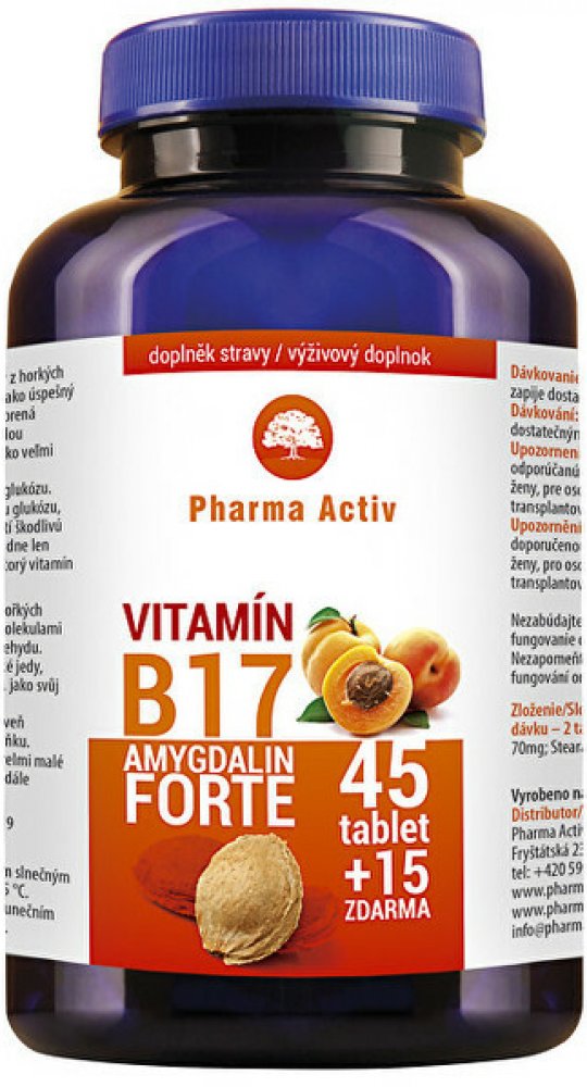 Pharma Activ Czech 60 tbl tablety trávení a zažívání unisex Pharma Active pro dospělé perorální bez příchutě Slovensko vitamín B17 trávení, zažívání a detox Nespecifikováno