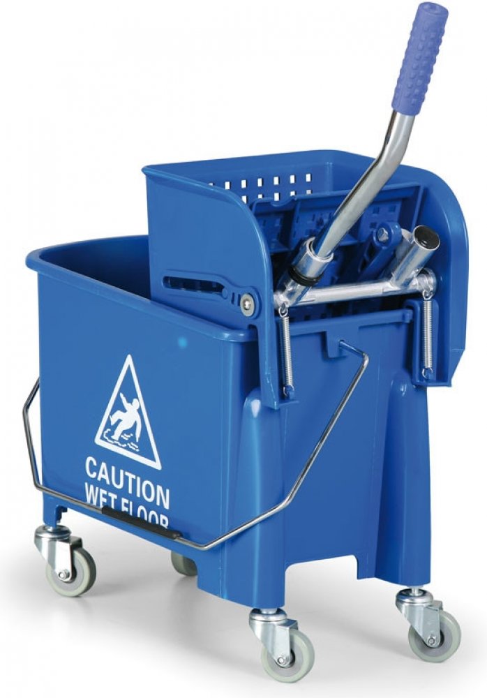 plastový úklidový kbelík se čtyřmi otočnými kolečky o průměru 50 mm kbelík má objem 17 litrů s možností vnitřního rozdělení na dvě poloviny vsunutím plastové přepážky pákovým ždímač je určen pro ploché mopy velikosti 40 cm (nelze použít pro třásňové mopy) nízká hmotnost, odnímatelný ždímač a madlo na přenášení kbelíku zajišťují snadnou manipulaci celkový rozměr š x d x v: 27 x 46 x 50 cm