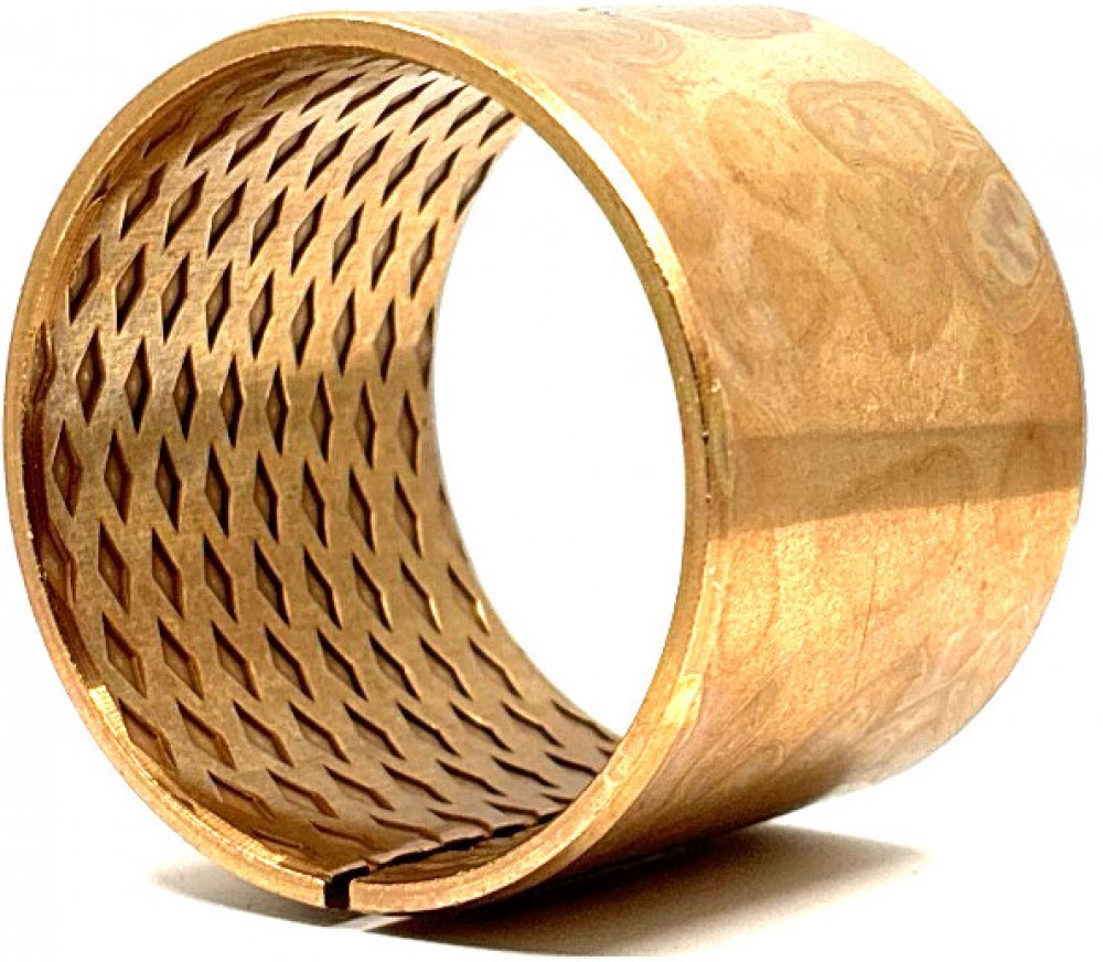 Celobronzová pouzdra z tenkého slinutého bronzového pásu, z materiálu CuSn8, určené pro mazání tuhým nebo plastickým mazivem.