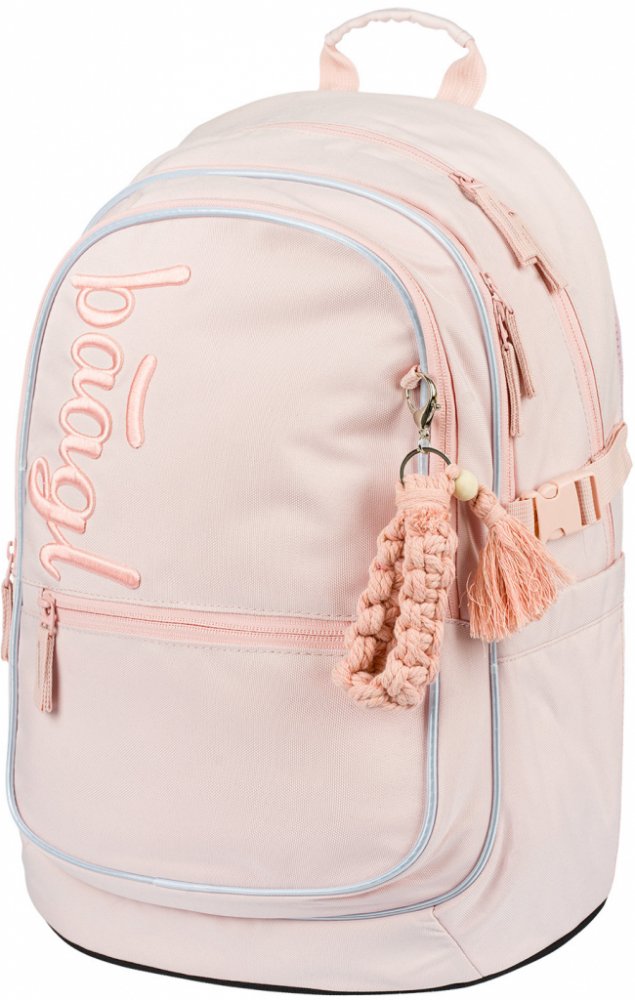 Krémově růžový batoh s decentním logem BAAGL, bužírkou a jemnými detaily se stane nezbytnou součástí outfitu každé školačky. Je vyrobený z recyklovaného materiálu a jeho minimalistický design se zkrátka neomrzí. • Ergonomický školní batoh se třemi samostatně uzavíratelnými komorami s vnitřním organizérem a kapsou na 15palcový notebook či tablet.