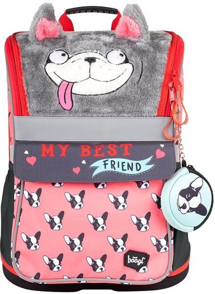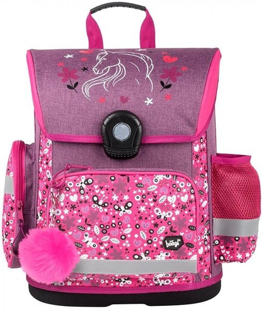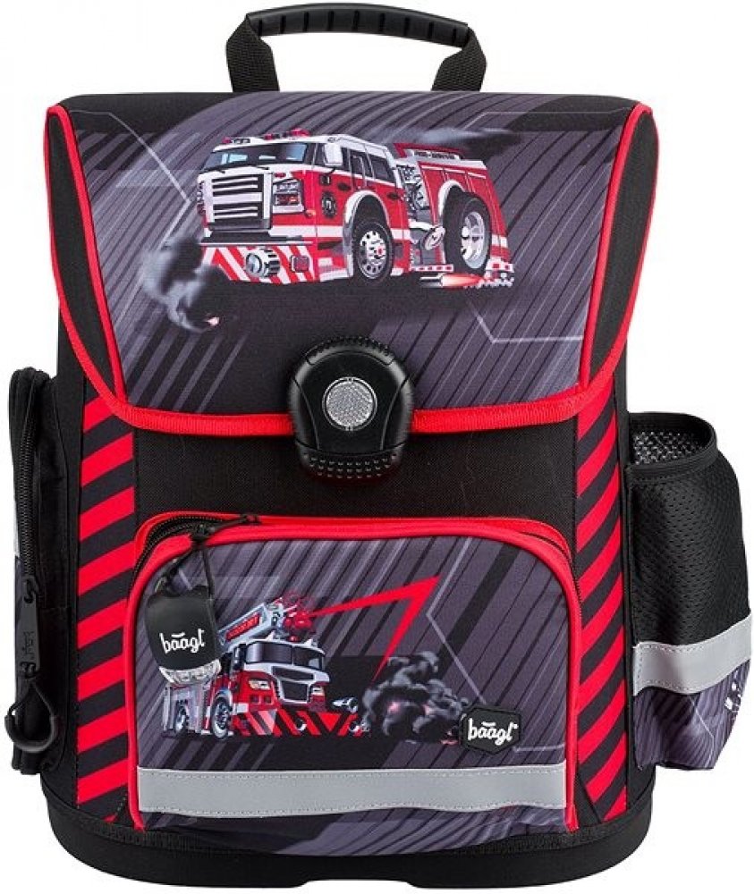 Školní aktovka vhodná pro žáky 1.–2. třídy ZŠ. Aktovka byla úspěšně testována v ITC Zlín. • Školní aktovka s vyztuženým tělem, vnitřním organizérem a třemi oddělenými kapsami a zapínáním na kvalitní přezku. • Posuvný zádový systém BAAGL ADJUSTABLE SYSTEM umožňuje nastavení optimální polohy popruhů vzhledem k výšce dítěte. • Ergonomicky tvarovaná záda, plně nastavitelné ramenní, prsní a boční kompresní popruhy pro optimální přizpůsobení postavě. • Na klopě aktovky naleznete praktický elastický úchyt na penál, který vždy zajistí rychlý přístup k psacím potřebám každého školáka. • Uvnitř aktovky je průhledná kapsa s rozvrhem a vnitřní organizér umožňující rovnoměrné rozložení hmotnosti. • Izolovaná přední kapsa, boční kapsa na láhev s nápojem a jedna uzavíratelná kapsa na drobnosti. • Lehká vyztužená konstrukce a pevné dno drží stabilní tvar aktovky. • Velmi nízká hmotnost aktovky – 1 100 g. • Objem aktovky je 18 l, nosnost 6 kg. • Tělo aktovky je vyrobené z pevného voděodolného materiálu. • Řada reflexních prvků zajistí bezpečnost dítěte. • Aktovka je vybavena trendy chlupatým přívěskem. .