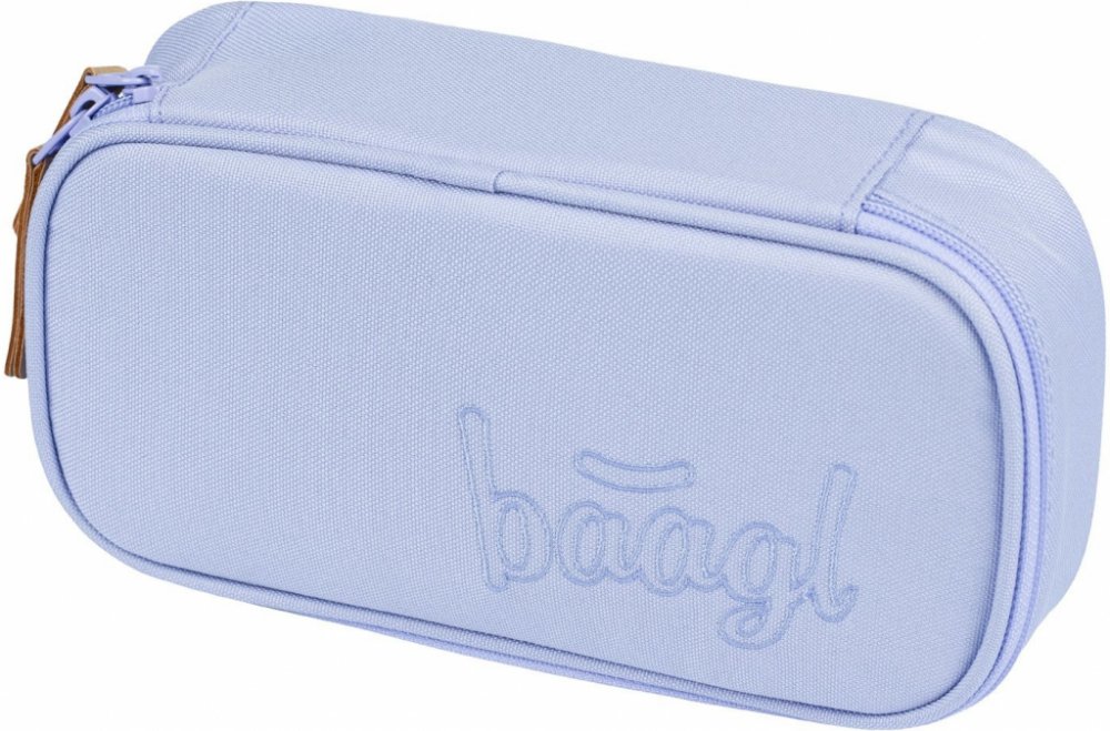 Prostorný penál v barvě lila a logem BAAGL. Součástí penálu z recyklovaného materiálu je hlavní kapsa a výklopná kapsička s přepážkou a gumičkami na tužky a jiné psací potřeby.