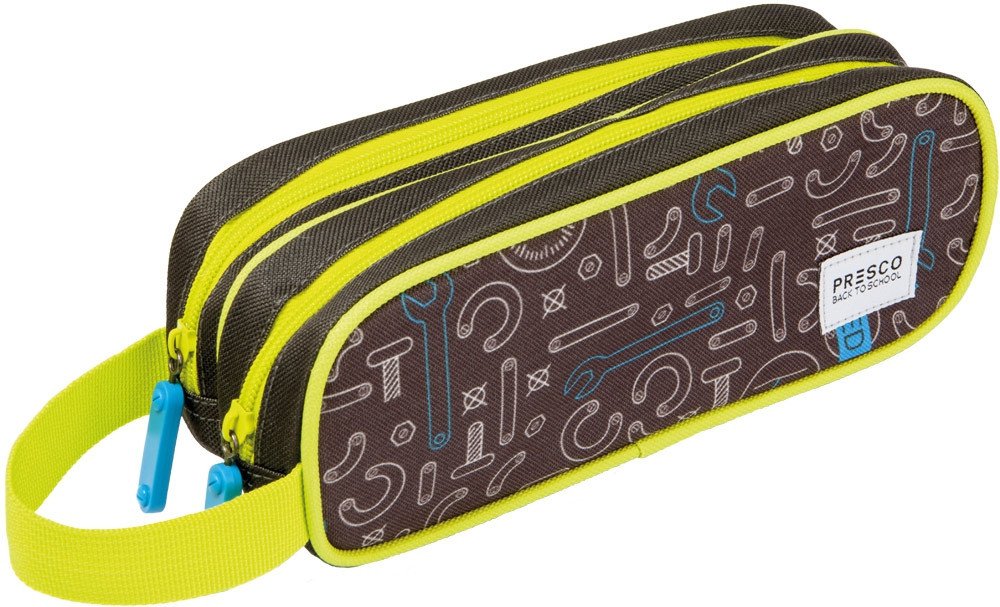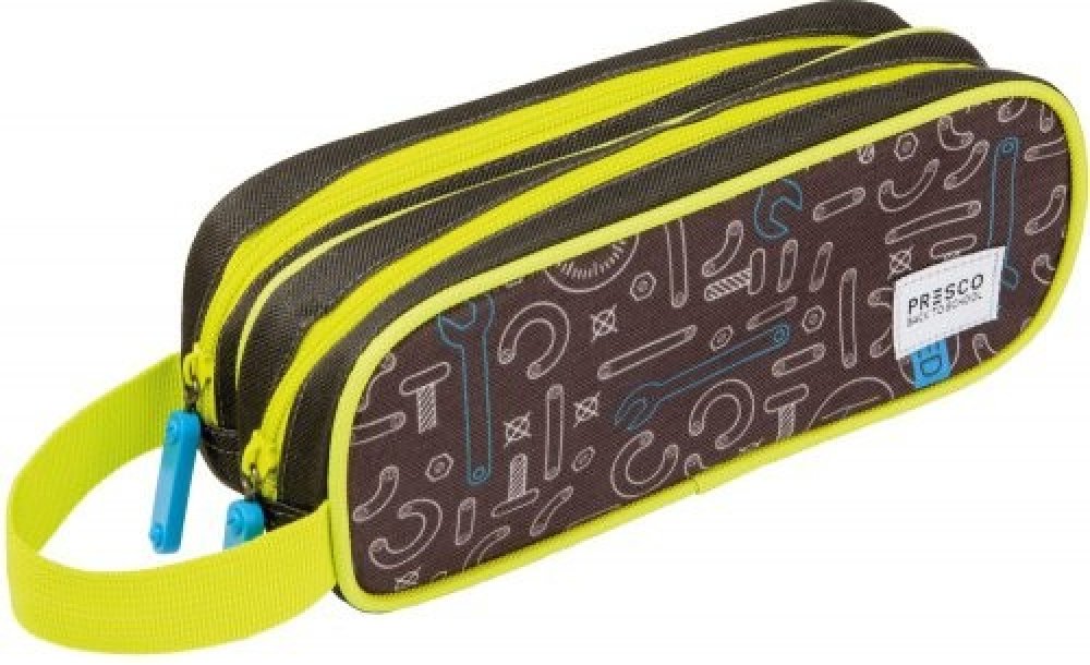 Praktický školní penál je dostatečně velký k uložení všech psacích potřeb a je vhodný pro školáky i pro studenty. Etue má uvnitř výklopnou, dvojitou chlopeň, na které je rozvrh hodin a 18 gumových úchytů pro bezpečné uložení tužek, pera a dalších psacích potřeb. Pod chlopní je prostorná komora, do které se vejdou pastelky i fixy, kružítko, úhloměr, nůžky, lepidlo a další nezbytnosti. Zevnitř na víku je kapsička uzavíratelná na zip, vhodná pro uložení drobných předmětů popř. peněz. Penál etue se uzavírá na zip, který je opatřený taháčkem pro lepší manipulaci. Školní pouzdro není naplněné.