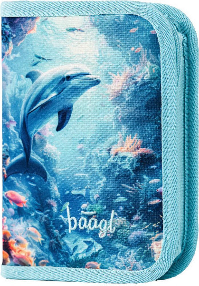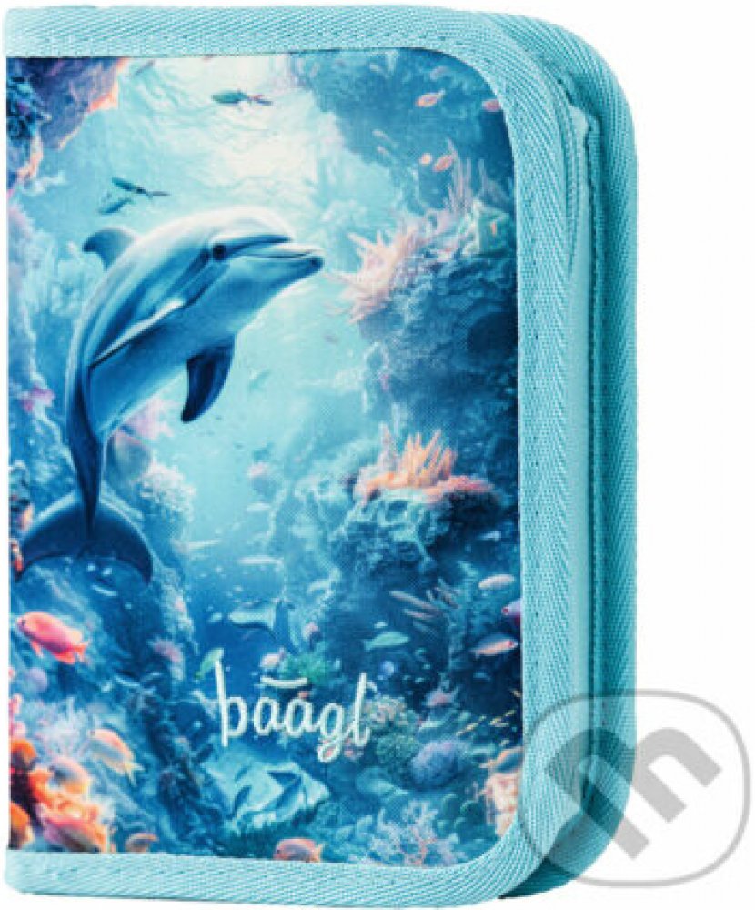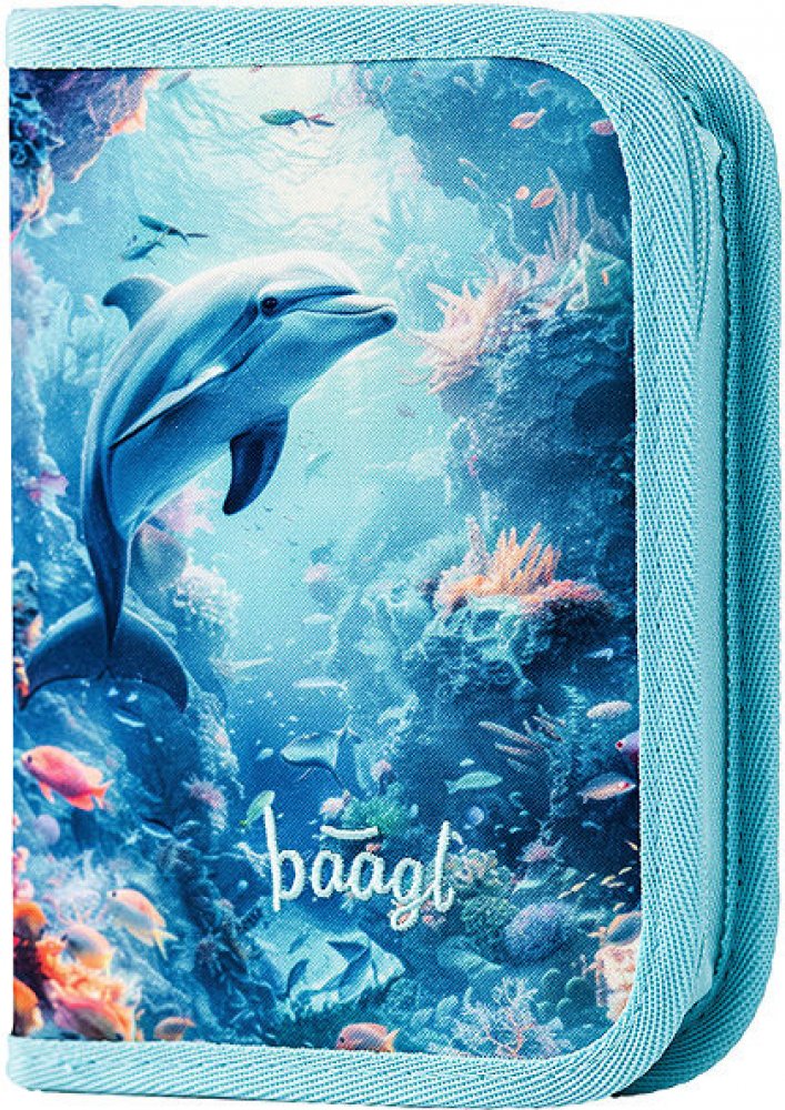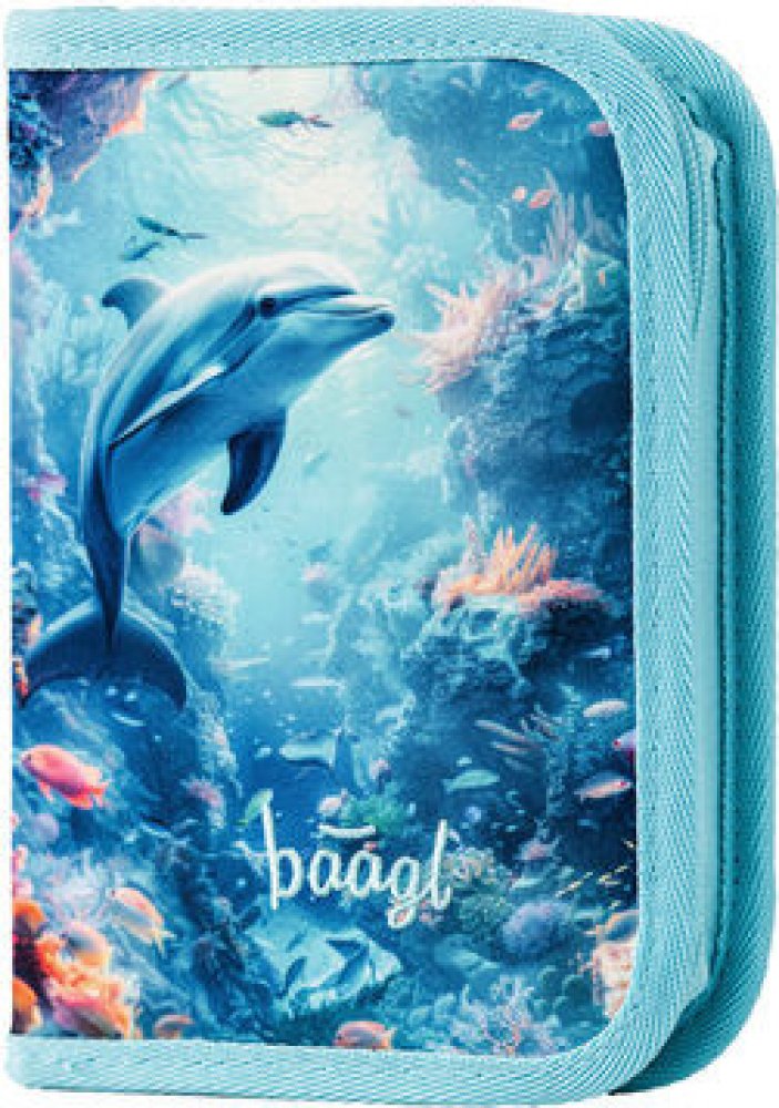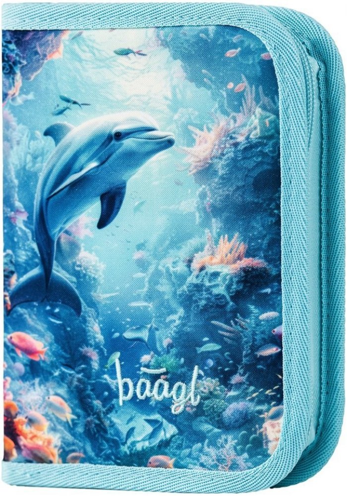 Klasický jednopatrový penál s motivem veselého delfína v oceánu přinese radost do každého školního dne.