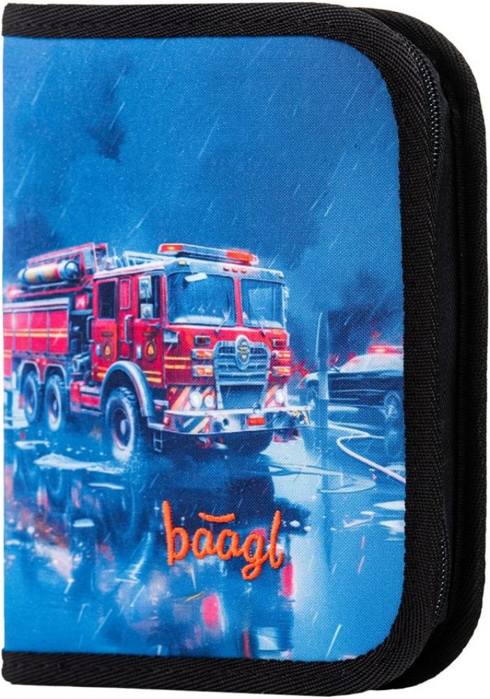 Klasický jednopatrový penál s motivem záchranářského auta a praktickou kapsičkou na drobnosti.