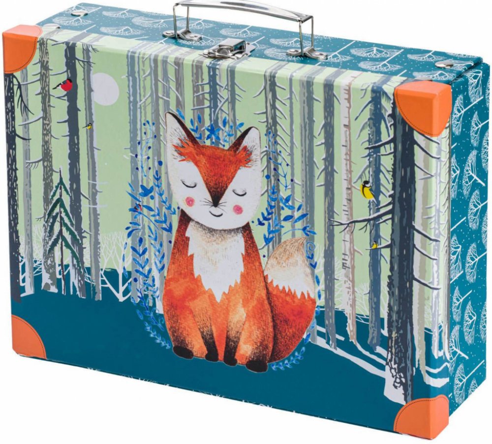 Jedinečný papírový znovu rozkládací kufřík české značky Baagl s motivem roztomilé lišky bezpečně uschová všechny školní potřeby. Jednoduchý systém skládání pomocí patentků.