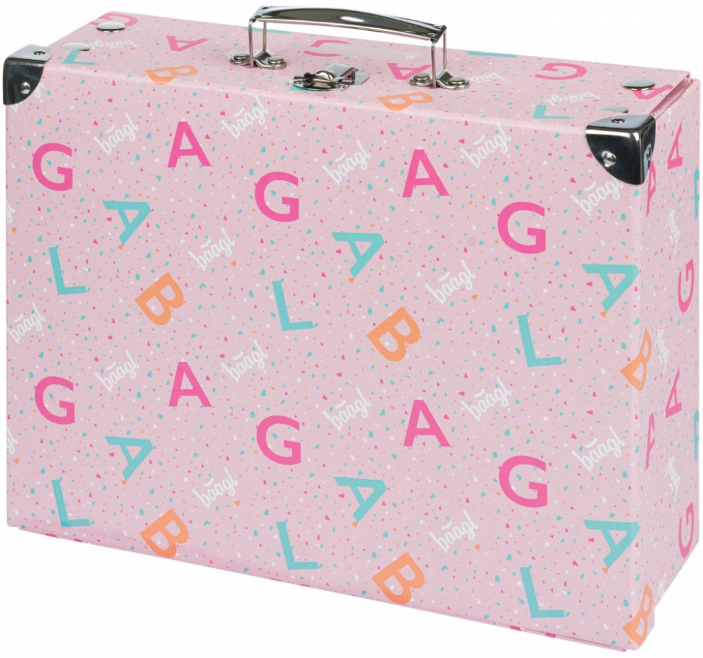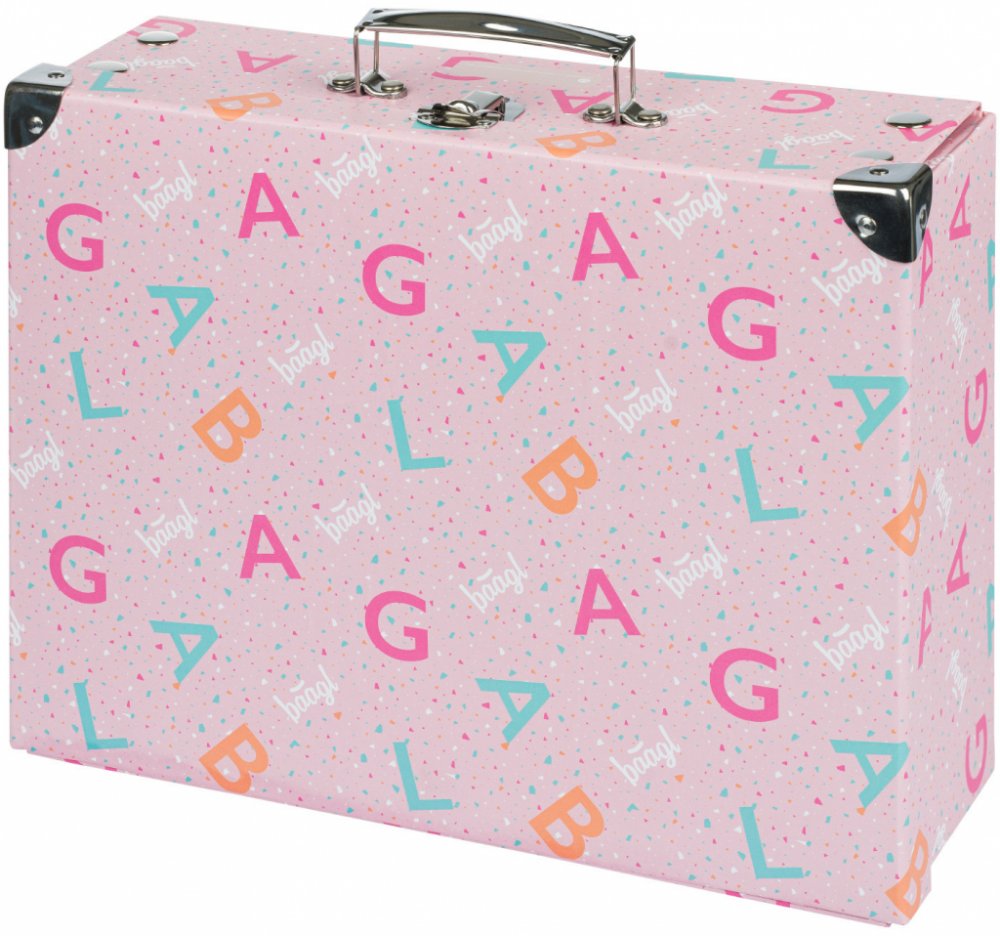 Papírový znovu rozkládací kufřík s logem Baagl v růžové barvě bezpečně uschová a ochrání výtvarné nebo psací potřeby. Jednoduchý systém skládání pomocí patentků.
