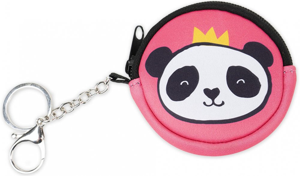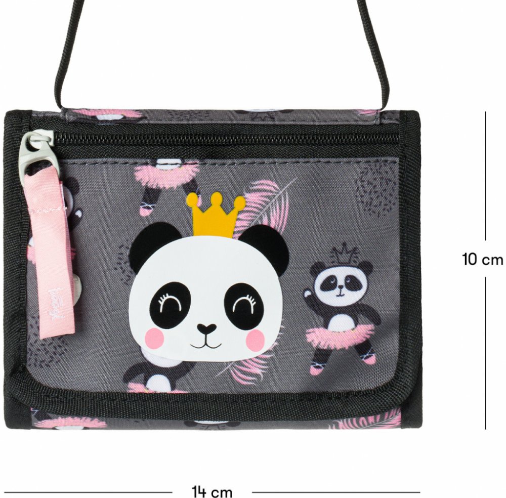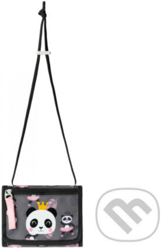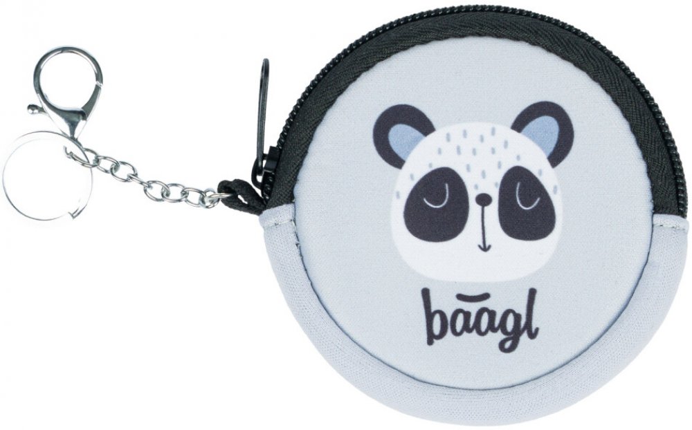 Textilní peněženka na krk s motivem Panda české značky Baagl v šedé barvě. Šikovná peněženka Panda, která se dá zavěsit na krk, bezpečně uschová drobné, čip na oběd nebo klíček od skříňky.
