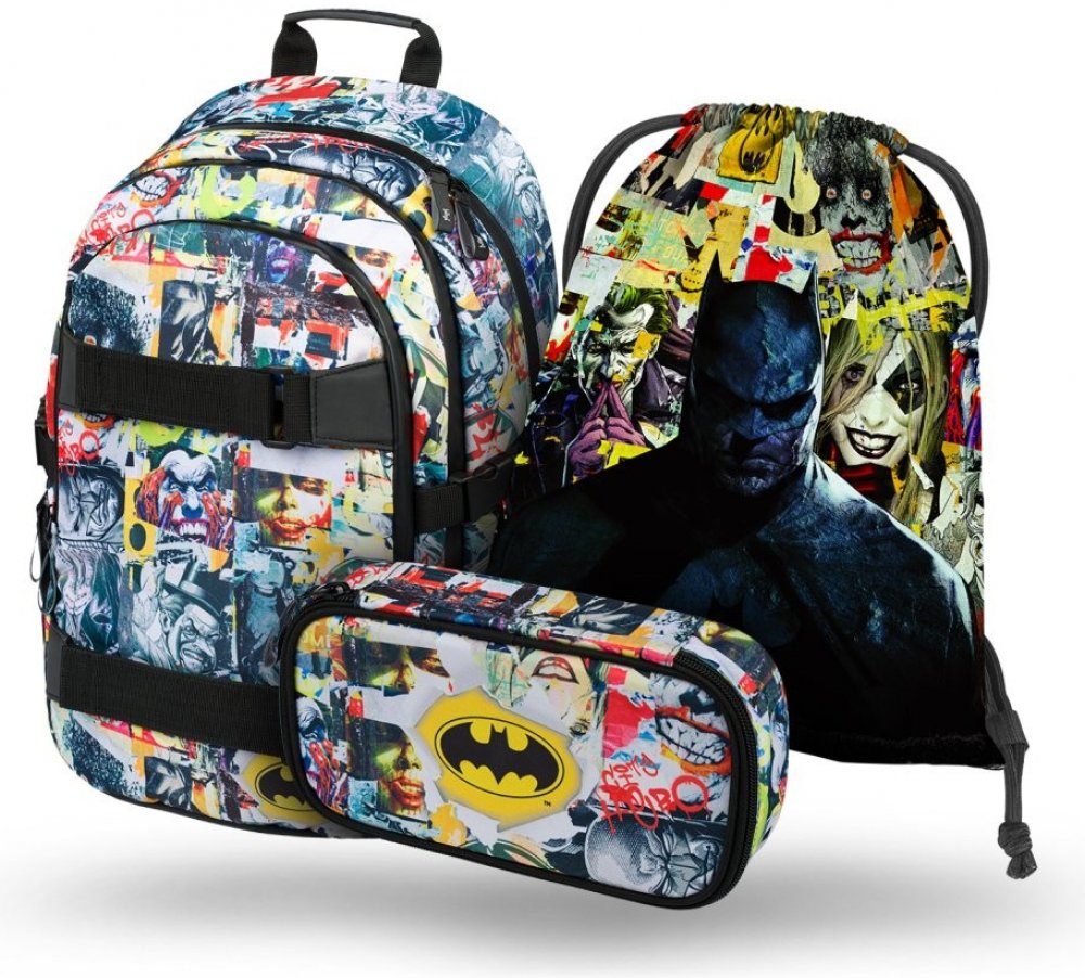 Cenově výhodný školní set Skate Batman Comics české značky Baagl pro všechny fandy komiksu. Skládá se z batohu řady SKATE, sáčku na tělocvik a prostorného penálu. Je vhodný od 3. třídy až na střední školu.