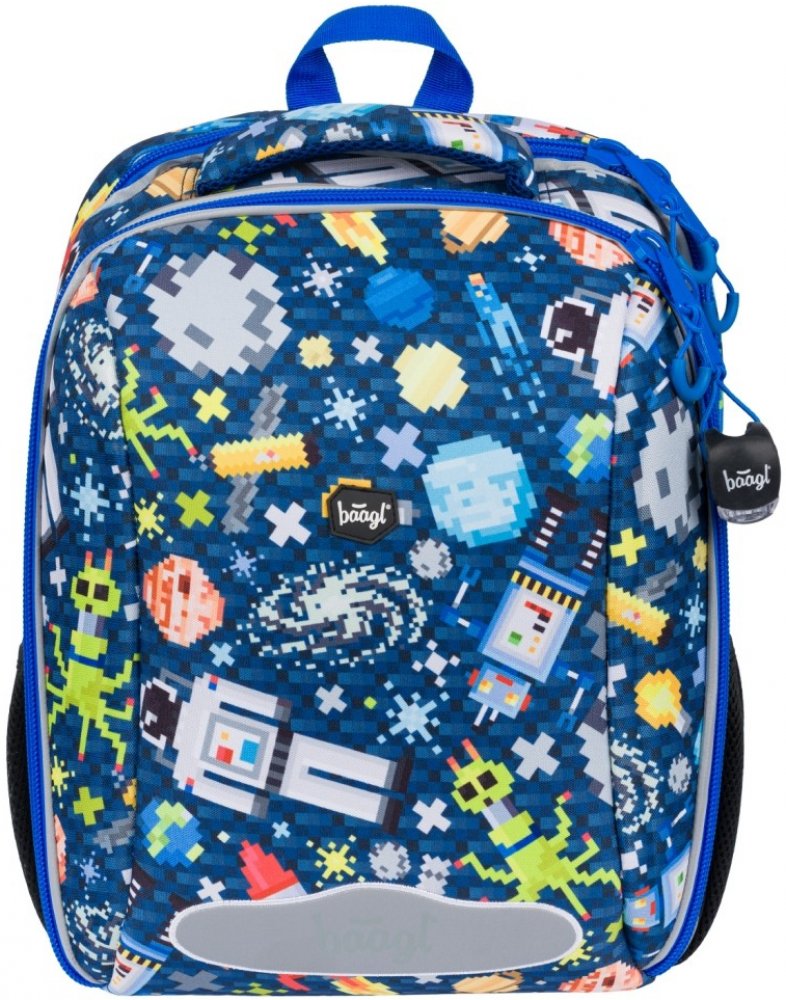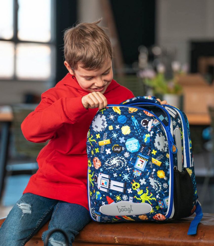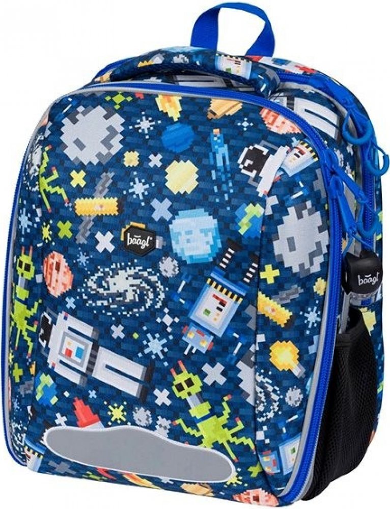 Stylová vyztužená aktovka s přívěskem světýlka pro moderní žáky české značky Baagl v atraktivní barvě s potiskem. Zajímavý a velmi povedený motiv. Reflexní prvky pro bezpečnost dítěte, ergonomicky tvarovaná záda pro příjemné nošení nebo velmi nízká hmotnost aktovky, to vše jsou podstatné věci, které by měly aktovky nejnovějších trendů splňovat.