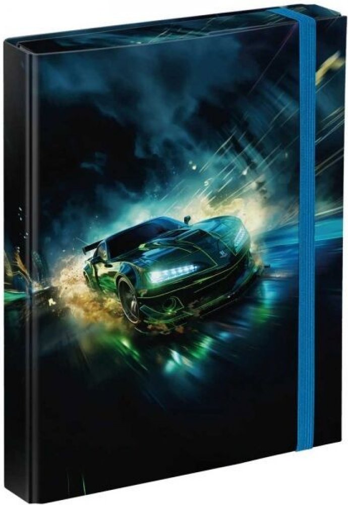 Školní desky na sešity v praktickém formátu A5 s motivem závodního auta.
