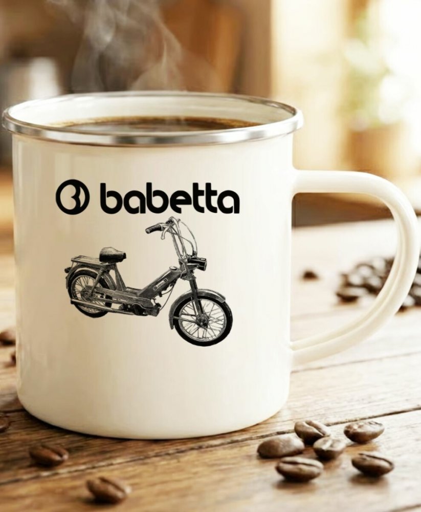 Babetta 207 logo černá Plechový hrnek VELKÝ 400 ml