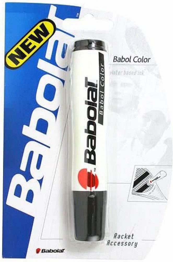 Mazak do naciągów Babolat Babol Color - black Specjalny tusz do malowania logo na naciągach w kolorze czarnym. Kształt flamastraumożliwia precyzjne kreślenie dwóch linii. Akrylowa farba nie wydaje nieprzyjemnej woni inie zasycha na flamastrze,dzięki czemu tusz jest natychmiast gotowy do użycia nawet podługiej przerwie w użytkowaniu.