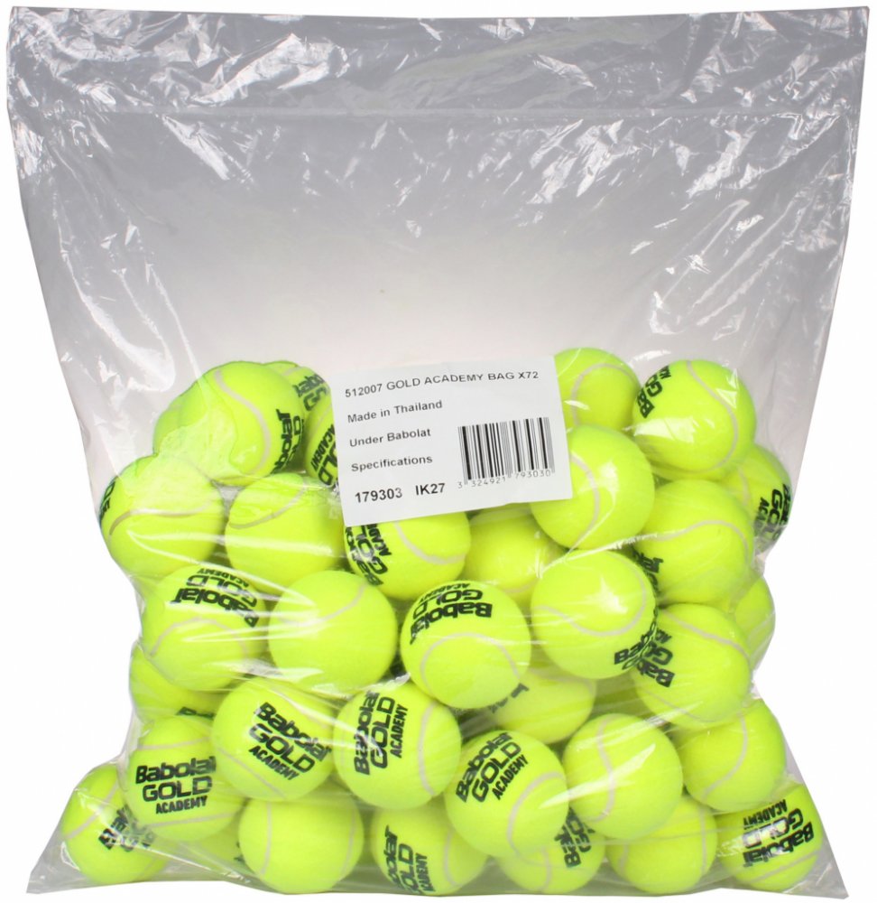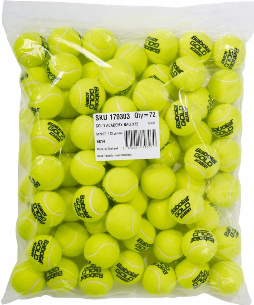 Pytel tenisových míčů Babolat Gold Academy s 72 kusy beztlakových míčů, které vynikají dlouhodobě stabilním výkonem, je oblíbený především tenisovými trenéry. Beztlaké míče jsou dlouhodobě schopné si podržet svůj stabilní odraz, na rozdíl od soutěžních míčů, jenž sice pro svůj živější odraz vynikají lepšími herními vlastnostmi, ale nejsou schopné si dlouhodobě podržet svůj odraz. Beztlaké míče Vám nabízí takřka nekonečně dlouhý stabilní herní potenciál. Míče Gold Academy jsou vhodné i pro použití tenisovými nahrávacími stroji. Všestrannost Gold Academy Vám umožňuje použití na všech typech kurtů, na antuce, trávě i na betonu bez markantního rozdílu. Každý hráč tenisu i trenér tenisu ví, jak je pro trénink užitečné mít vždy po ruce plný koš míčů.
