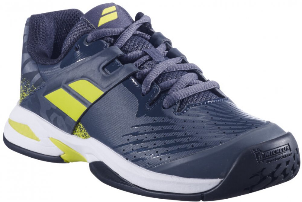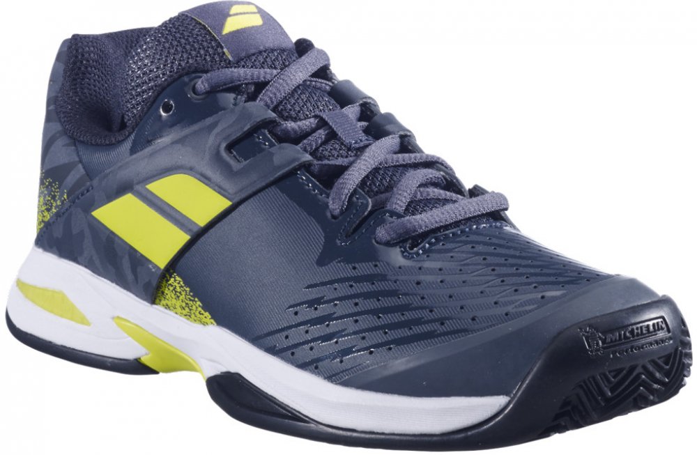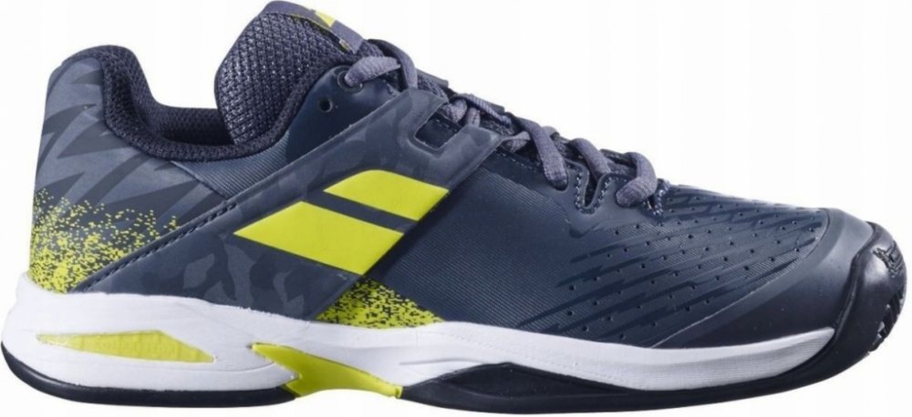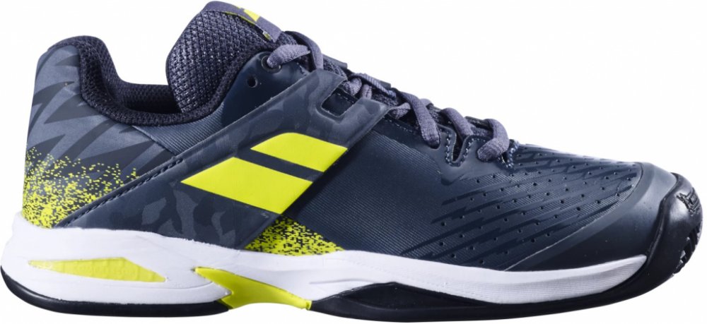 Juniorská tenisová obuv Babolat Propulse Clay Junior Boy - šedá/aero Nejvíce inovativní juniorská obuv Babolat s využitím nejlepších technologií. Navržena s ohledem na mladé hráče hledající odolnou a podporující obuv pro hru. Výborně prodyšný, odolný a komfortní svršek díky použití systému Cell Shield . Zesílený systém podpory a držení nohy díky ideálnímu přizpůsobení, které umožňuje Foot Belt . O absorpci nárazů se zvýšeným komfortem a bezpečností se stará osvědčená technologie umístěná v zadní části podrážky - Kompressor . Velmi odolná podrážka Michelin Performance . Vzhledem k tvaru profilu běhounu podrážky je obuv určena pro hru na antukových kurtech.